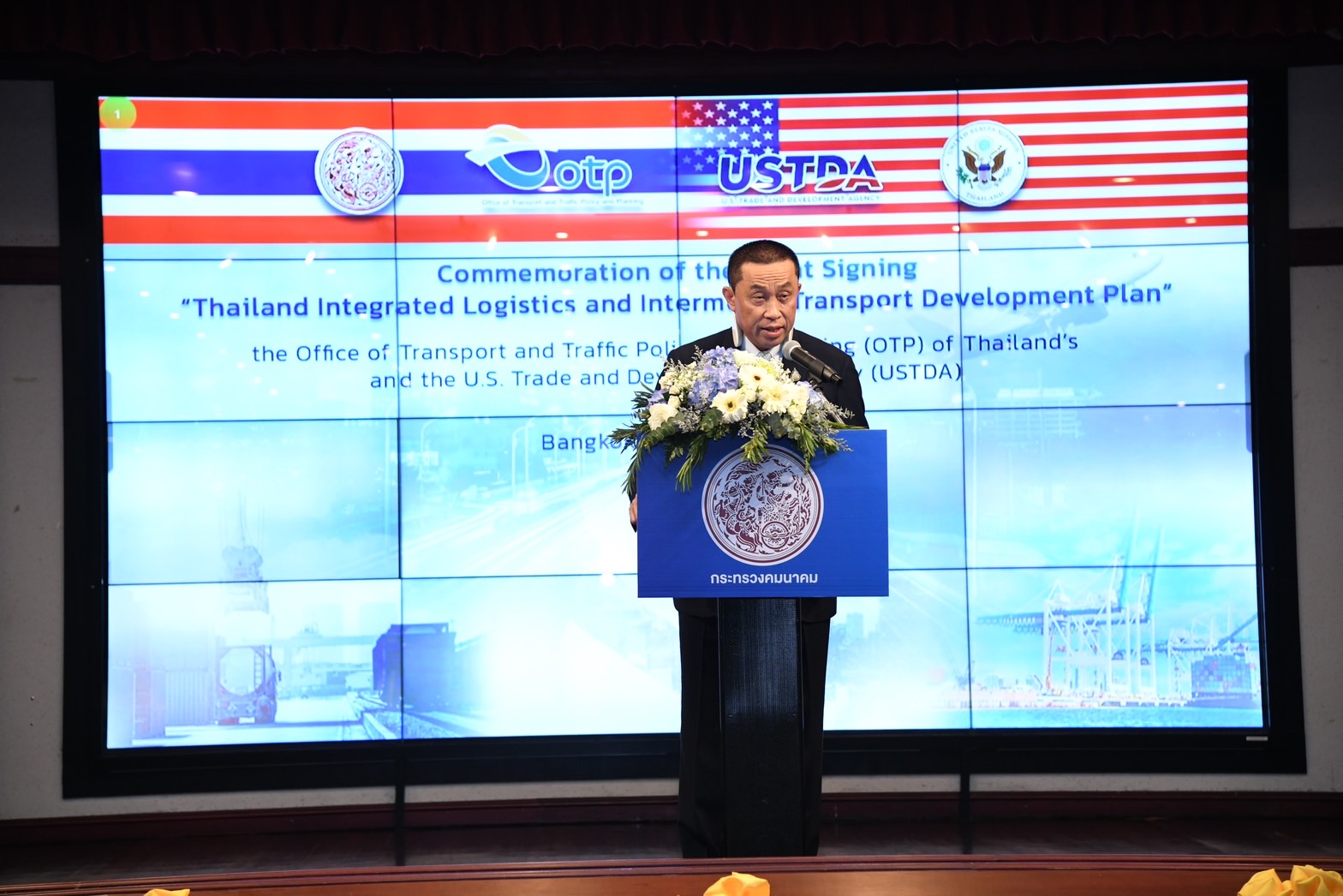 สำหรับพิธีแลกเปลี่ยนบันทึกความตกลงการให้ความช่วยเหลือทางวิชาการที่ได้จัดขึ้นในวันนี้เป็นความร่วมมือระหว่าง สนข. และ USTDA ภายใต้โครงการ Thailand Integrated Logistics and Intermodal Transport Development Plan มีวัตถุประสงค์เพื่อศึกษาและให้คำแนะนำหรือข้อเสนอแนะในการดำเนินการขนส่งสินค้าต่อเนื่องหลายรูปแบบทางรถไฟให้บรรลุเป้าหมายที่กระทรวงคมนาคมได้กำหนดไว้ทั้งในด้านการลดต้นทุนการขนส่ง การลดมลพิษจากการขนส่งทางถนน เพิ่มความปลอดภัยในการเดินทาง และส่งเสริมให้ประเทศไทยเป็นศูนย์กลางการขนส่งและโลจิสติกส์ในภูมิภาค โดยเฉพาะอย่างยิ่งจะช่วยส่งเสริมผลักดันนโยบายการปรับเปลี่ยนรูปแบบการขนส่ง (Modal Shift) ของกระทรวงคมนาคมให้ดำเนินการได้อย่างมีประสิทธิภาพ มากยิ่งขึ้น โดยจะมีการพิจารณาระเบียงการขนส่งหลักที่สำคัญของไทย ได้แก่ 1) ท่าเรือแหลมฉบัง - หนองคาย