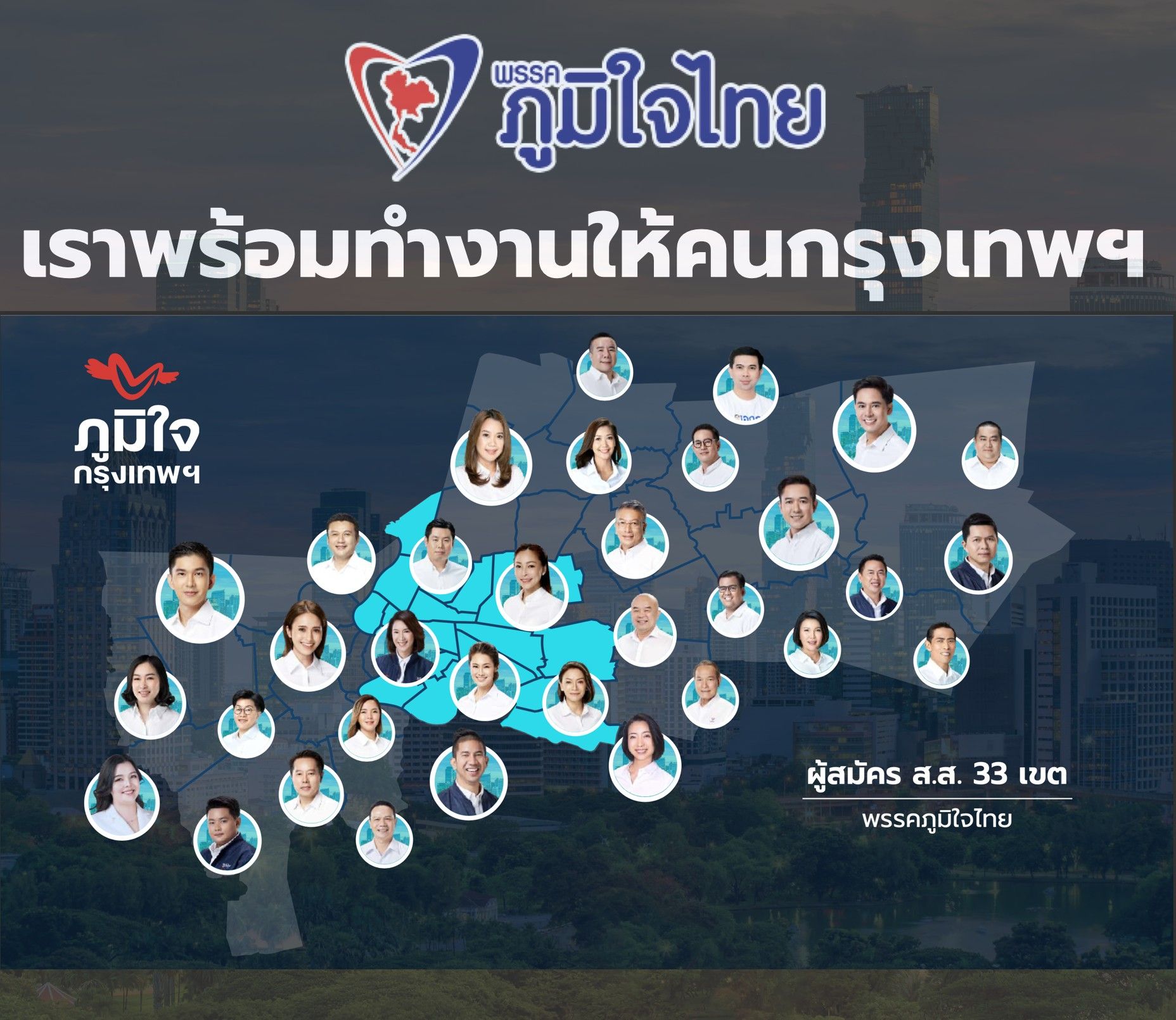 ผู้สื่อข่าวรายงานว่ารายชื่อผู้สมัคร ส.ส กรุงเทพฯ พรรคภูมิใจไทย ประกอบไปด้วย