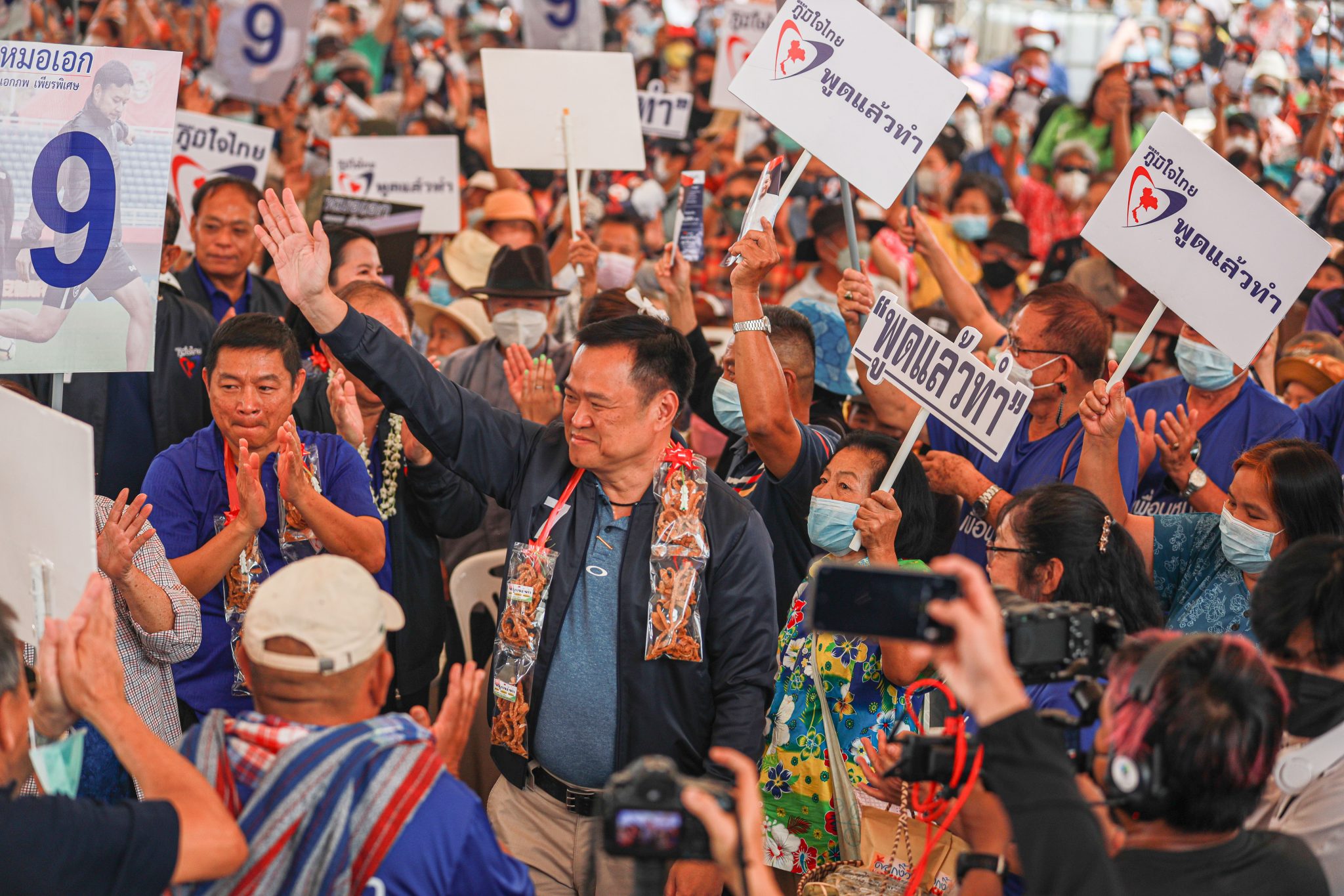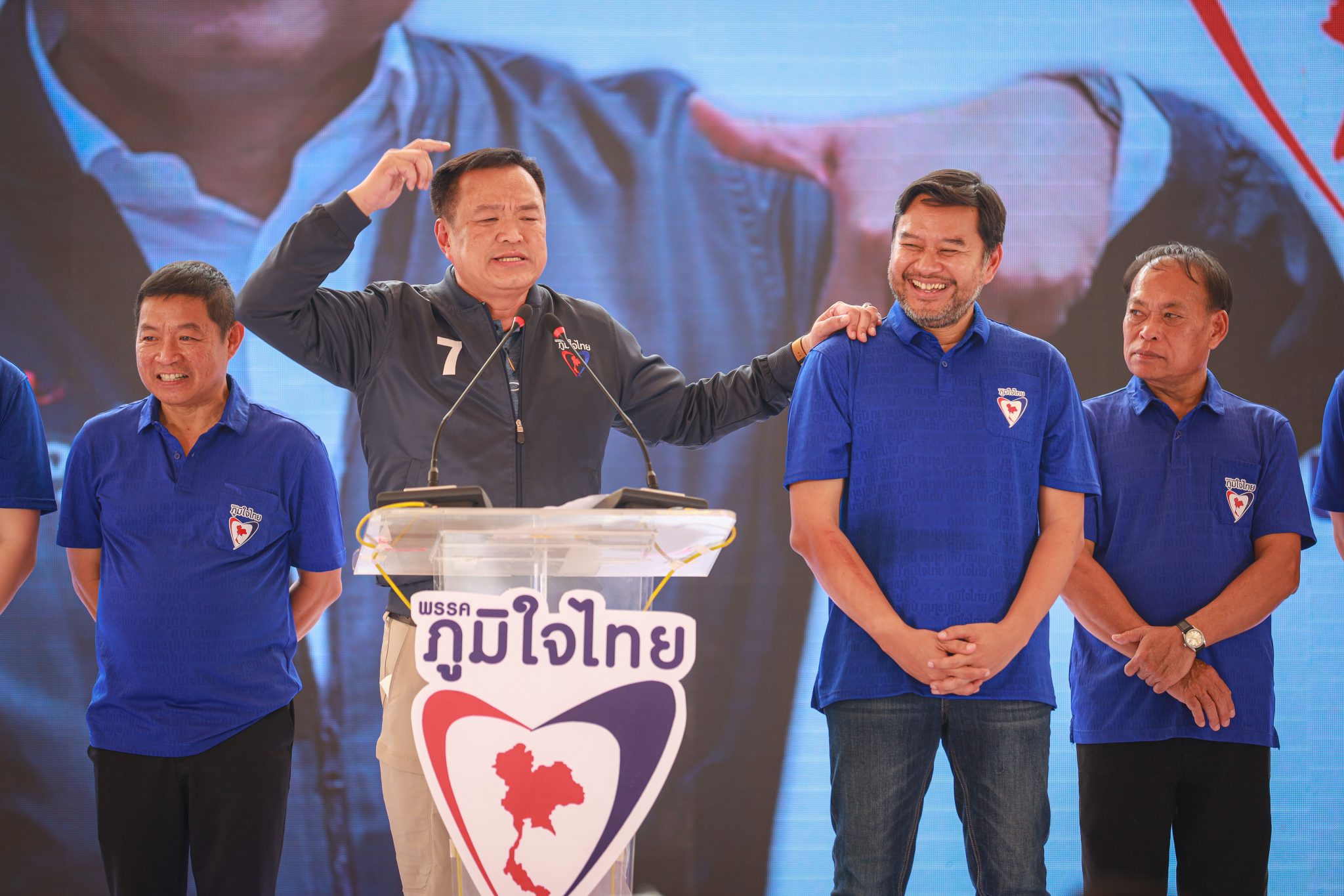 นายอนุทิน กล่าวว่า “ขอบคุณนักนักเจ้า ขอบคุณขนาดเจ้า อากาศฮ้อนจะอี้ ก็ยังมาต้อนฮับอย่างอบอุ่น พี่น้องมาต้อนฮับ ขนาดนี้ จะไม่ได้หัวใจผมไปได้จะได๋”