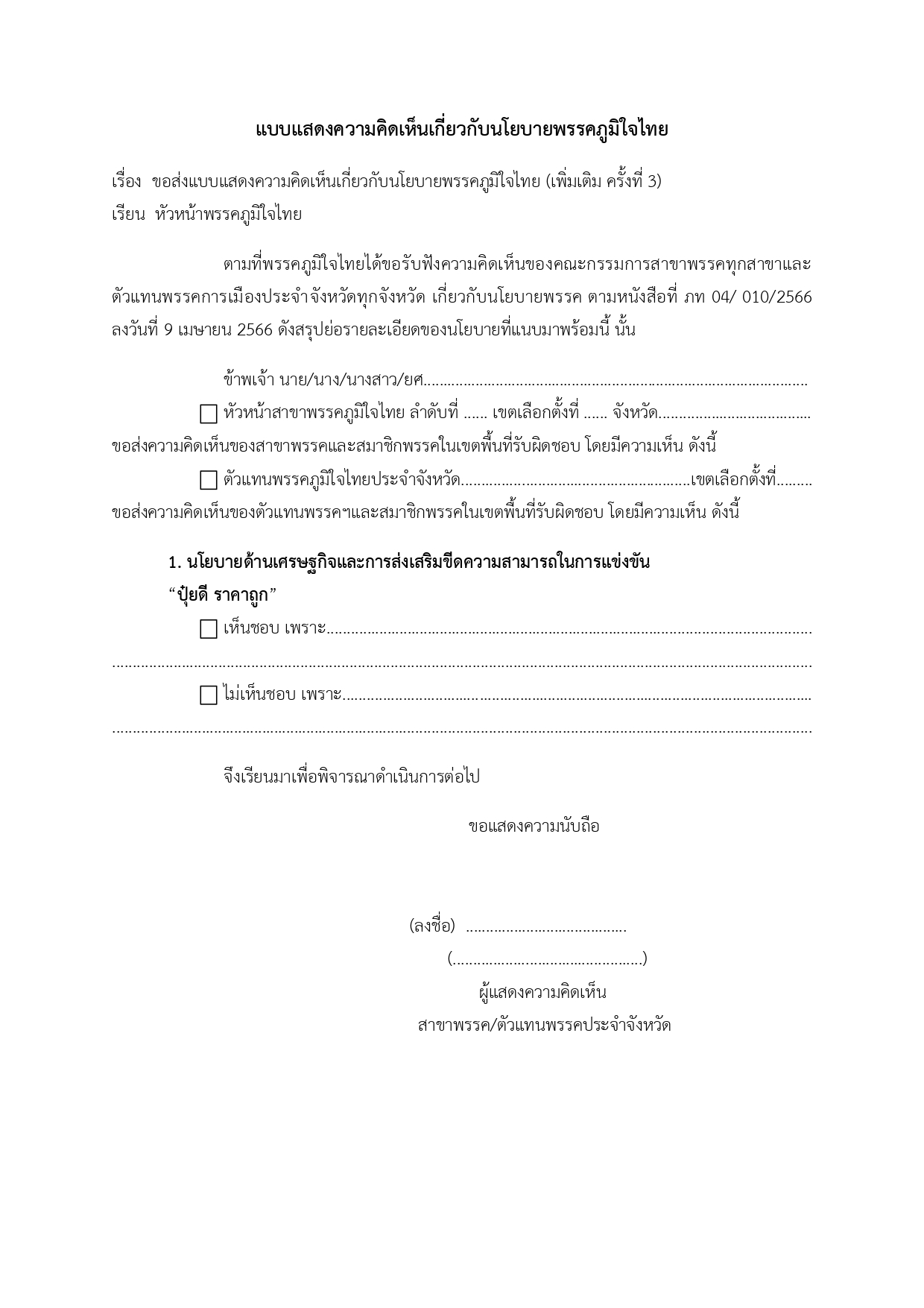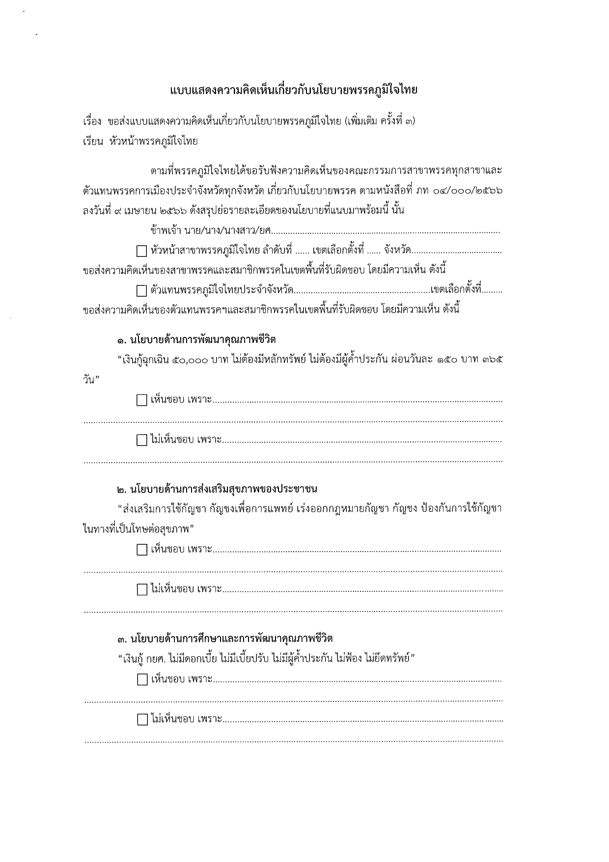 10 เมษายน 2566 เวลา 12:25เรื่องขอรับฟังความคิดเห็นเกี่ยวกับนโยบาย (เพิ่มเติม ครั้งที่ ๓) แชร์บทความนี้: