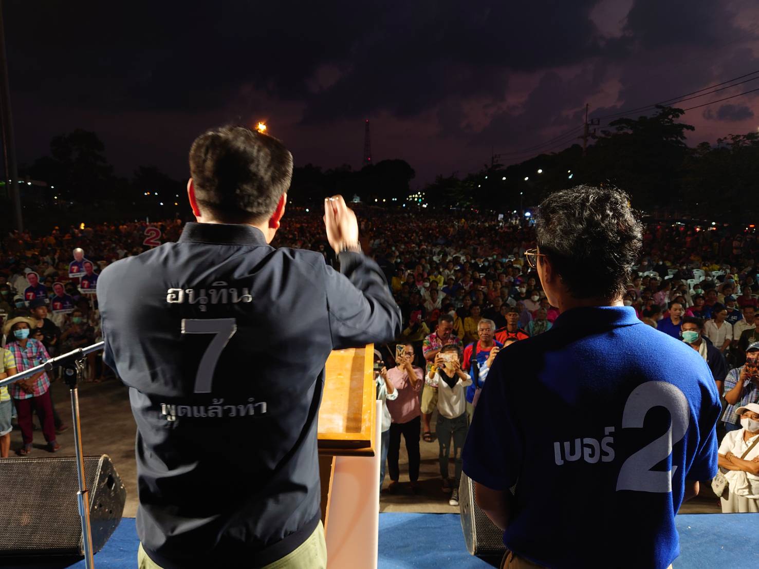 "พรรคภูมิใจไทย แหลงแล้วทำ เราทำงาน ไม่สร้างความขัดแย้ง ถ้าชอบแบบนี้ ขอให้เลือกพรรคภูมิใจไทย พรรคเรามีผลงานมาก กระทรวงคมนาคม เราพัฒนาถนน กระทรวงสาธารณสุข เราเดินหน้านโยบายฟอกไตฟรี เราจัดหาเครื่องฉายมะเร็ง ไปในทุกพื้นที่ อสม.เราเพิ่มค่าตอบแทน และผลักดันให้ได้ค่าตอบแทนเดือนละ 2,000 บาท ซึ่งบรรจุใน ร่างกฎหมายงบประมาณแล้ว เราทำงานไม่เกรงใจใคร เรามุ่งมั่นทำงานเพื่อประชาชน ผมจะทำให้ระนอง เป็นศูนย์กลางเศรษฐกิจของภูมิภาคและของโลกใบนี้ ผมจะทำให้ดูครับ"