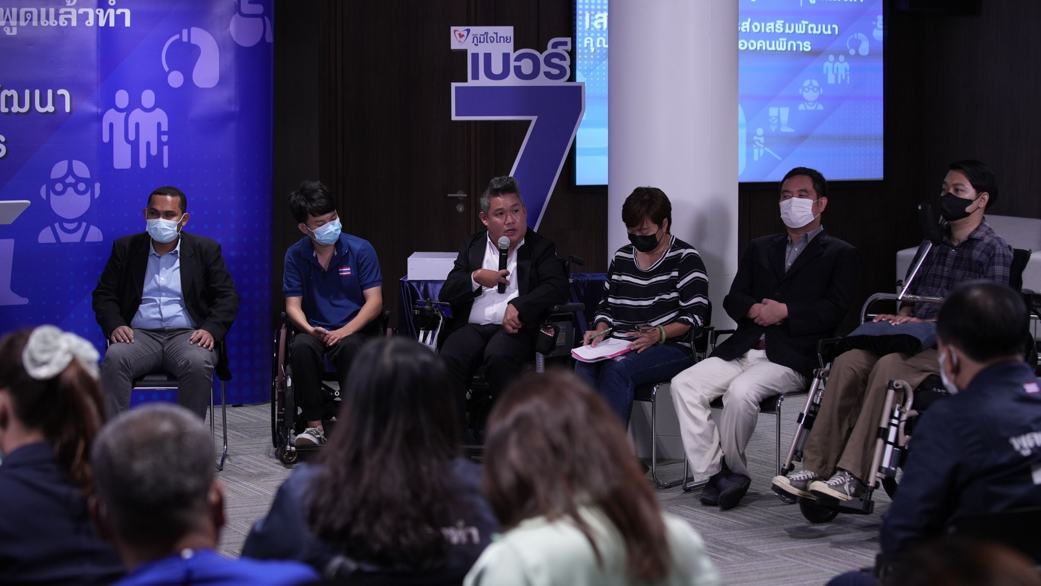 นายสรอรรถ กลิ่นประทุม ประธานที่ปรึกษาหัวหน้าพรรคภูมิใจไทย นางสาวอนุสรี ทับสุวรรณ คณะทำงานยุทธศาสตร์ ด้านส่งเสริมพัฒนาคุณภาพชีวิตคนพิการ ผู้สมัครส.ส. ระบบบัญชีรายชื่อ พรรคภูมิใจไทย นางสาวชนม์ทิดา อัศวเหม ผู้สมัครส.ส.ระบบบัญชีรายชื่อ พรรคภูมิใจไทย ร่วมเปิดเวทีเสวนา “นโยบายการส่งเสริมพัฒนาคุณภาพชีวิต และสิทธิของคนพิการ” โดยมี ผู้แทนสมาคมคนพิการทุกประเภทความพิการ และผู้แทนคนพิการในองค์กร สมาคม ชมรม สถาบันการศึกษาและมูลนิธิที่เกี่ยวข้องกับการส่งเสริม และพัฒนาคุณภาพชีวิตคนพิการ เข้าร่วมเสวนาจำนวน 11 แห่ง เช่น สมาคมสภาคนพิการทุกประเภทแห่งประเทศไทย, สมาคมผู้ปกครองคนพิการทางสติปัญญาแห่งประเทศไทย, สมาคมเพื่อผู้ บกพร่องทางจิตแห่งประเทศไทย, สมาคมคนตาบอดแห่งประเทศไทย, สมาคมผู้ปกครองบุคคลออทิซึม (ไทย), มูลนิธิพระมหาไถ่เพื่อการพัฒนาคนพิการ, ภาคีเครือข่ายขนส่งมวลชนทุกคนต้องขึ้นได้ และโรงเรียนเศรษฐเสถียรในพระราชูปถัมภ์ เข้าร่วม