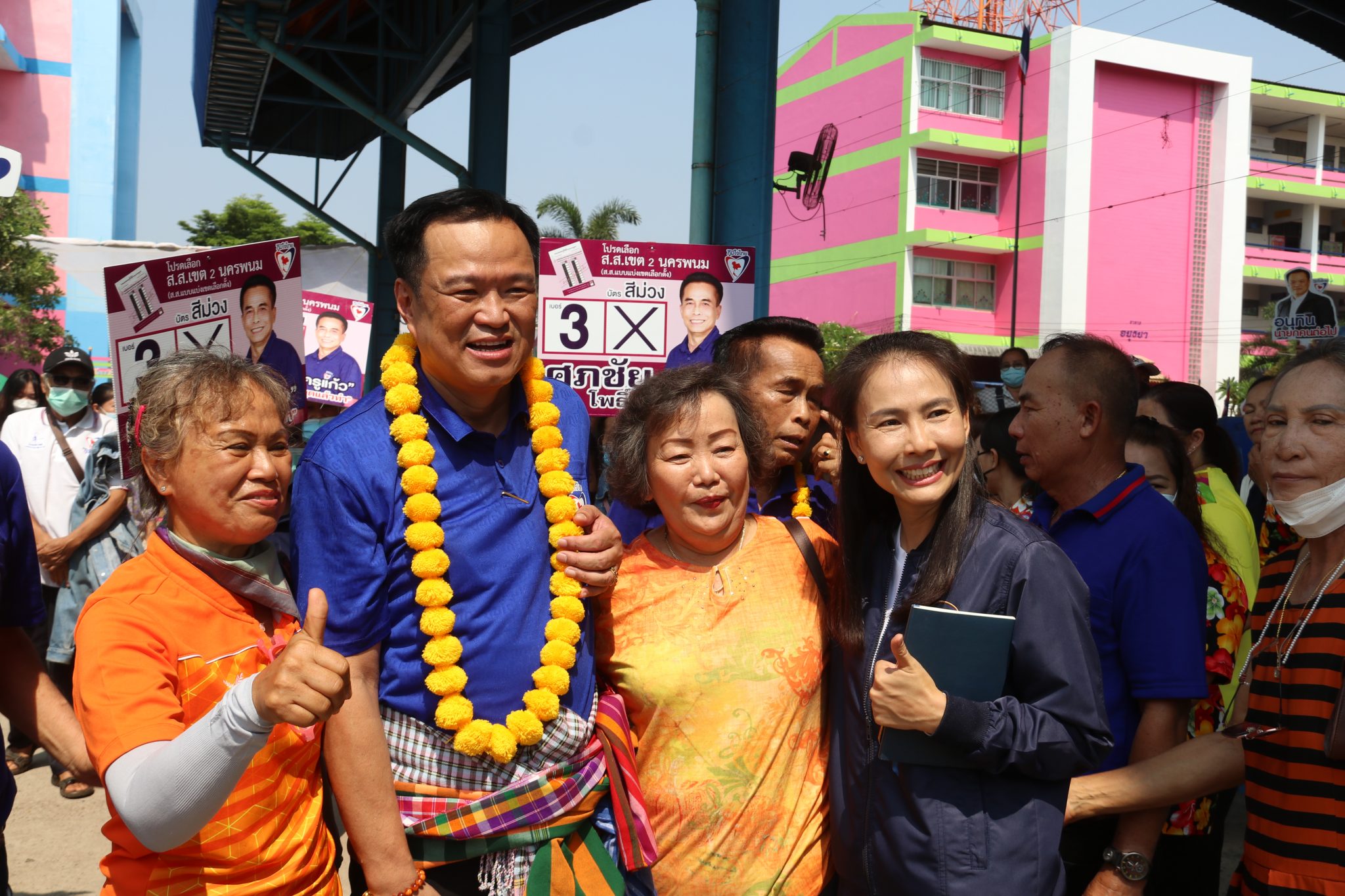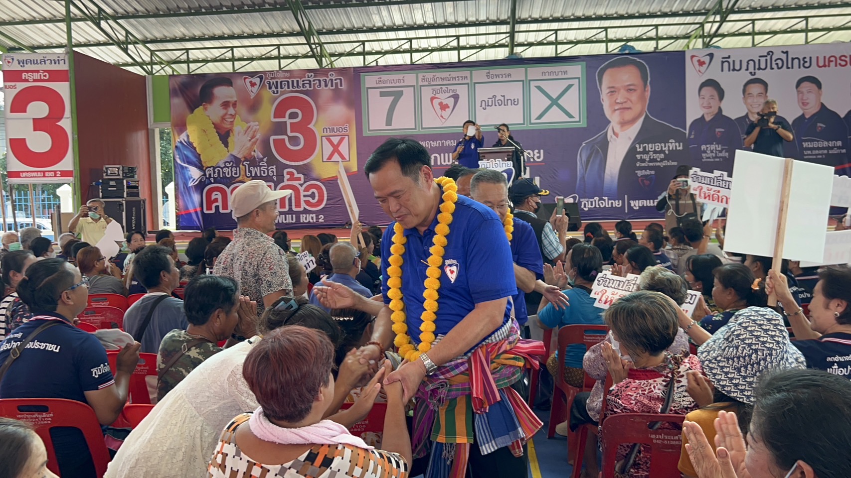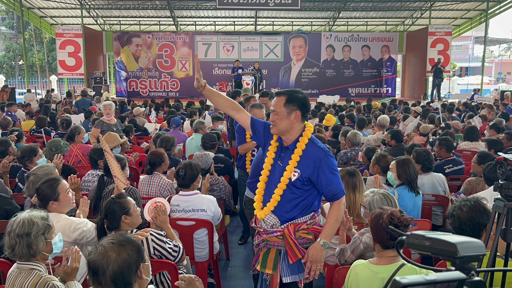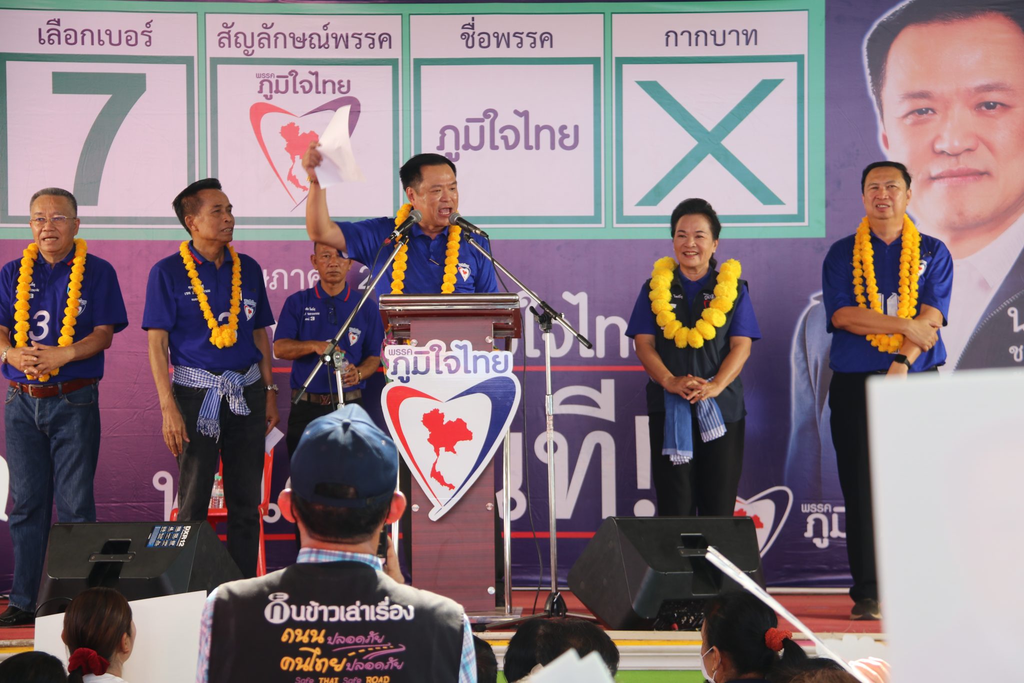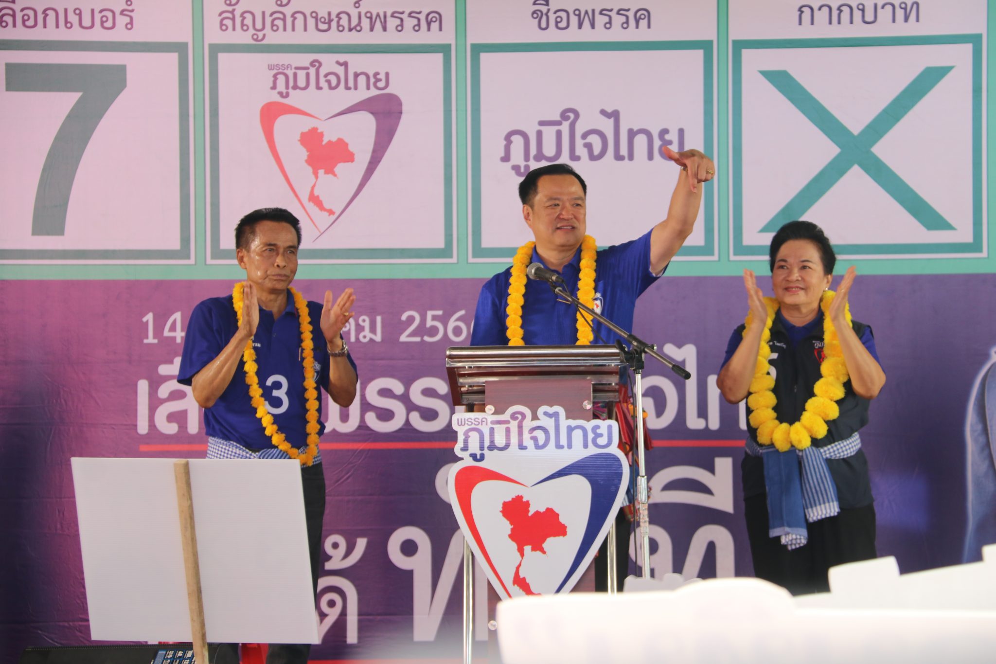 “มีบางพรรค มาสร้างความเข้าใจผิดกับพี่น้อง ว่าเลือกภูมิใจไทย จะได้พลเอกประยุทธ์ จันทร์โอชา เป็นนายกฯ ไปบอกว่า อย่างไรเสีย เราก็เลือกพลเอกประยุทธ์ ซึ่งไม่จริง เขากำลังโกหก ผมประกาศแล้วว่าพร้อมเป็นนายกฯ เข้ามาดูแลพี่น้อง ถ้าพรรคภูมิใจไทยได้เสียงมากพอ ดูแลเหมาะสม คนชื่ออนุทิน นี่เอง จะเป็นนายกฯ ไม่แบ่งให้ใคร เราสู้กันมาขนาดนี้ เพื่อขอโอกาสเข้าไปทำงาน ถ้าประชาชนไว้ใจ จนเราได้เสียงมามากแล้ว มีความเหมาะสมในการเป็นนายกฯ แล้ว เราไม่ให้ใคร มันไม่มีคนโง่ขนาดนั้น นี่คน กินข้าว ไม่ใช่ควาย ส่วนคนที่มาใส่ร้ายเรา เขาพูดไม่จริง โกหก วันนี้ หาเสียงเขาให้พูดความจริง