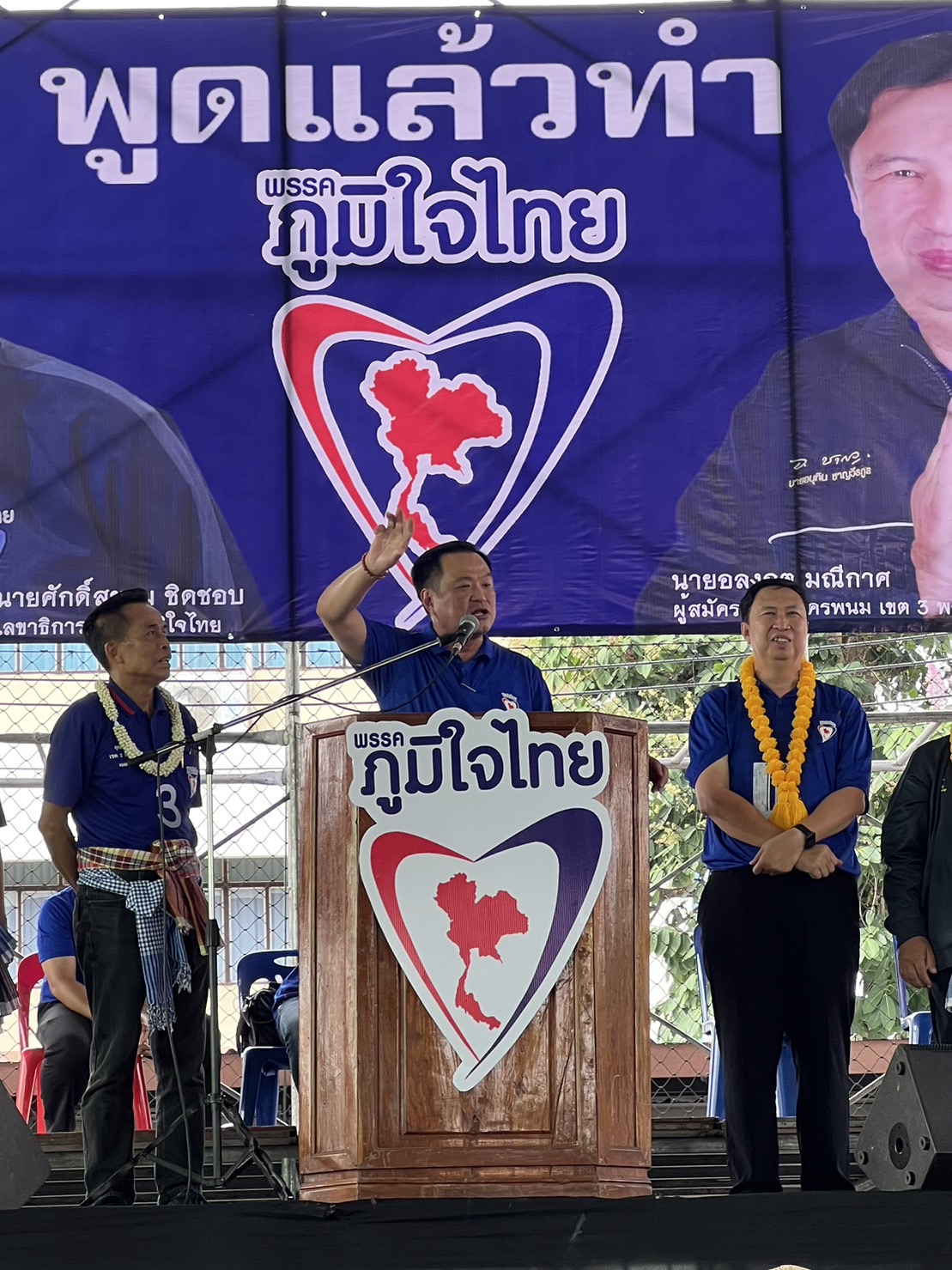 “เลือกตั้งครั้งที่แล้ว พรรคภูมิใจไทย มี ส.ส. นครพนม 1 คน ชื่อศุภชัย โพธิ์สุ นายศุภชัยไม่ลืมบุญคุณประชาชน ทุ่มเทสุดความสามารถสร้างความเจริญให้กับจังหวัด มาวันนี้ เรามั่นใจว่า เราได้พิสูจน์ฝีมือกันมาแล้ว การเลือกตั้งที่จะเกิดขึ้น เราขอยกจังหวัด ขอโอกาสให้พรรคภูมิใจไทย ได้ทำงานอย่างเต็มที่ ไร้รอยต่อ พื้นที่อีสานเหนือ เราขอให้นครพนม เป็นจุดเริ่มต้น ในการรุกอีสานเหนือปักหลังลงเสาเข็มในพื้นที่อย่างมั่นคง”