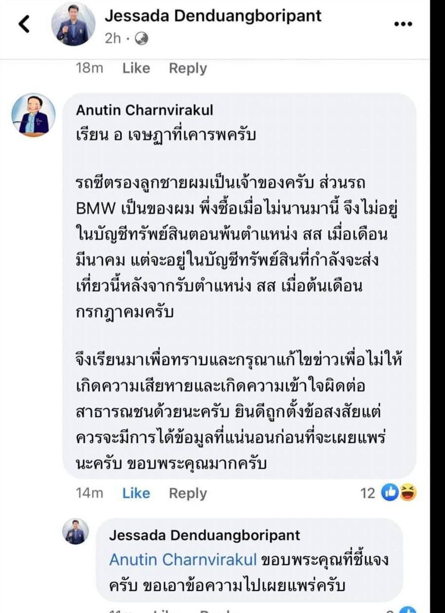 "รถซีตรองลูกชายผมเป็นเจ้าของครับ ส่วนรถ BMW เป็นของผม พึ่งซื้อเมื่อไม่นานมานี้ จึงไม่อยู่ในบัญชีทรัพย์สินตอนพ้นตำแหน่ง ส.ส.เมื่อเดือนมีนาคม แต่จะอยู่ในบัญชีทรัพย์สินที่กำลังจะส่งเที่ยวนี้หลังจากรับตำแหน่ง ส.ส. เมื่อต้นเดือนกรกฎาคมครับ
