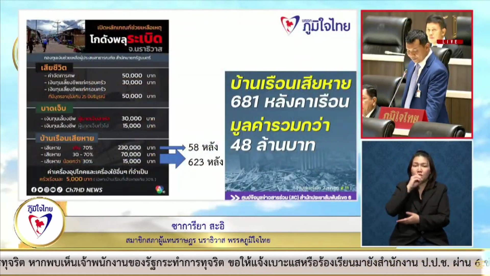 สำหรับหมู่บ้านมูโนะเป็นชุมชนเศรษฐกิจสำคัญมีการค้าขายกับประเทศเพื่อนบ้าน มีบ้านเรือน 656 ครัวเรือน มีผู้อยู่อาศัย 2,840 คน หลังจากที่เกิดเหตุระเบิดทำให้ได้รับความเสียหายอย่างรุนแรง และเป็นวงกว้าง ทำให้มีผู้เสียชีวิต 12 ราย ผู้ได้รับบาดเจ็บ 209 ราย มีบ้านเรือนเสียหายหนัก 58 หลัง และเสียหายแบบซ่อมแซมได้ 446 หลัง ข้อมูลนี้มาจากหน่วยงานภาครัฐ และจากตนเองที่ได้ลงพื้นที่เข้าไปสำรวจในวันที่ 31 กรกฎาคม 2566 กับทีมงาน และจากการที่ได้ลงพื้นที่ตั้งแต่ช่วงแรกทำให้ได้ทราบถึงปัญหา และความต้องการของพี่น้องที่ประสบเหตุ คือ การเร่งรัดเบิกจ่ายเยียวยาในการช่วยเหลือ การซ่อมแซมบ้านเรือนที่พักอาศัย เพื่อรักษาทรัพย์สินที่มีอยู่จากมิจฉาชีพ อีกทั้งฝนที่ตกเกือบทุกวัน ทำให้บ้านเรือนส่วนหนึ่งที่ประกอบอาชีพเป็นร้านค้าขาดรายได้ ทั้งนี้ขอให้ทางหน่วยงานที่เกี่ยวข้องเร่งรัดเยียวยาฟื้นฟูโดยเร่งด่วน
