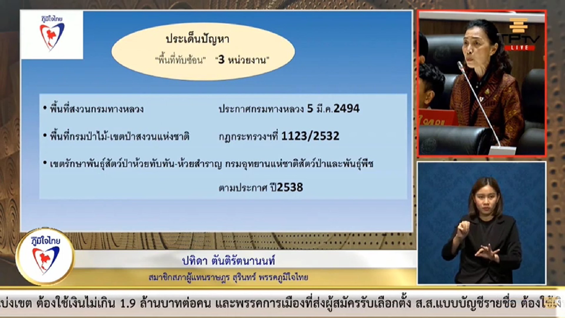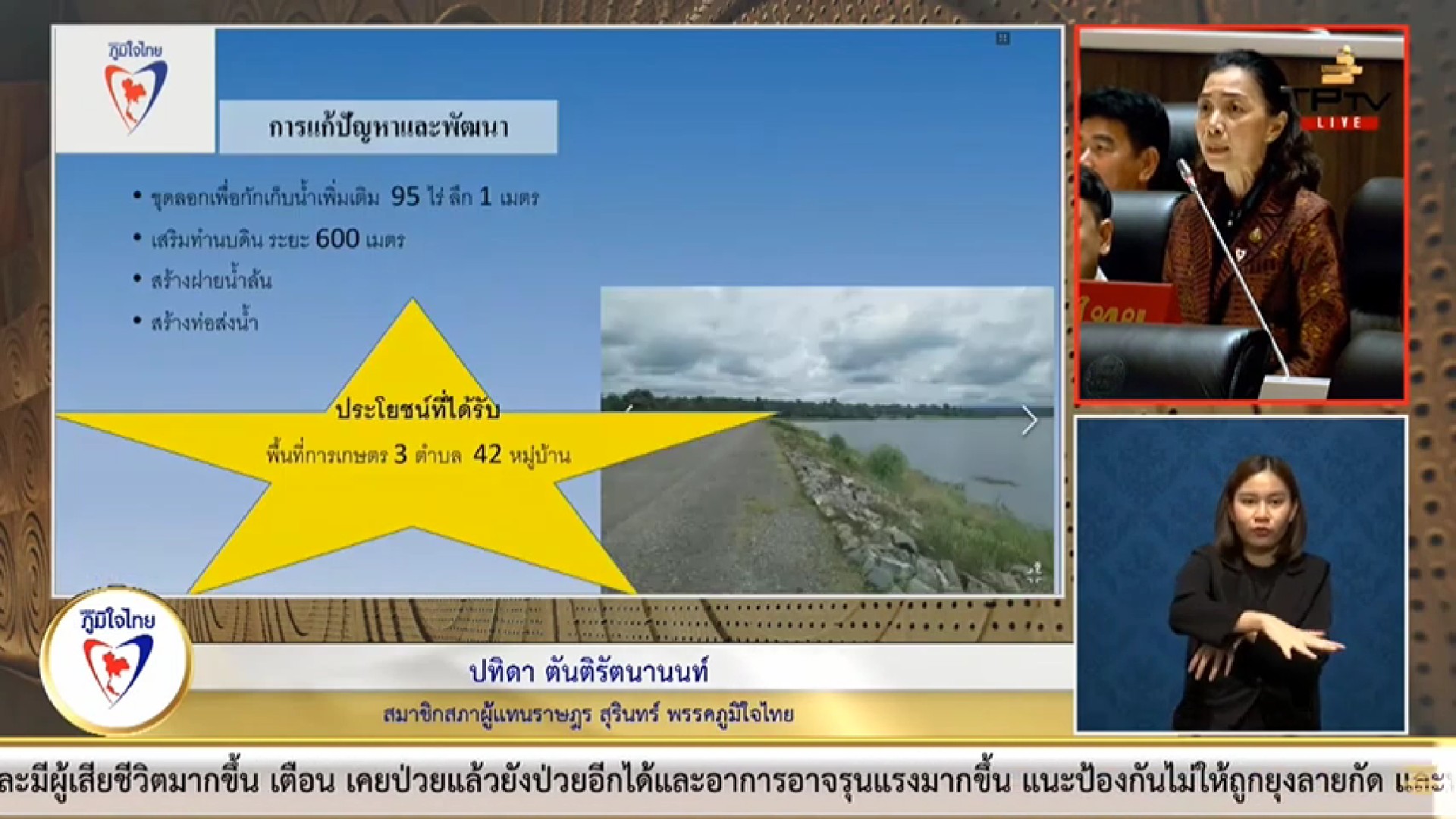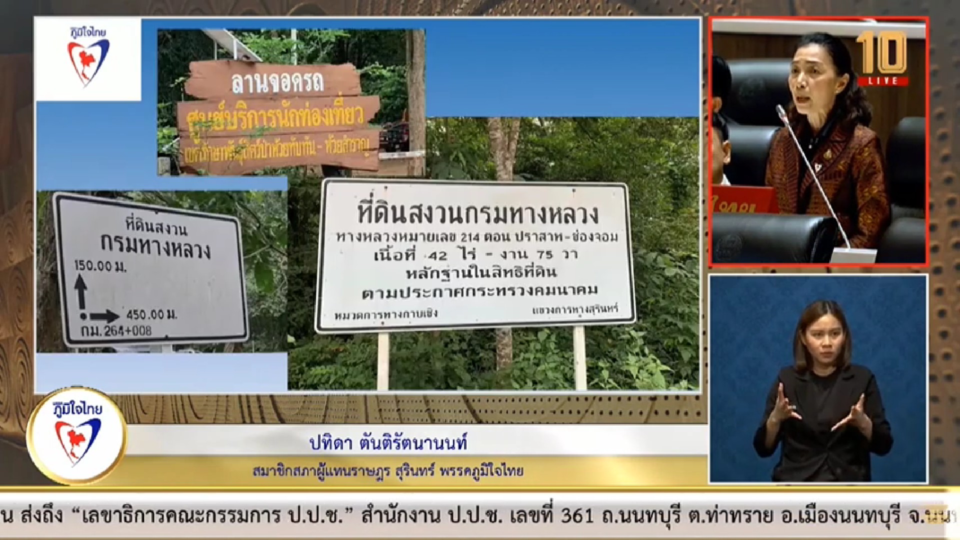 9 สิงหาคม 2566 เวลา 19:16“สส.ปทิดา” วอนภาครัฐเร่งดำเนินการพัฒนาจุดผ่านแดนถาวรช่องจอม ต.บ้านด่าน อ.กาบเชิง จ.สุรินทร์ โดยเฉพาะปัญหาพื้นที่ทับซ้อน9 สิงหาคม 2566 นางปทิดา ตันติรัตนานนท์ สส.จังหวัดสุรินทร์ เขต 8 พรรคภูมิใจไทย ปรึกษาหารือ เรื่องปัญหาจุดผ่านแดนถาวรช่องจอม ตำบลด่าน อำเภอกาบเชิง จังหวัดสุรินทร์ เป็นจุดผ่านแดนที่มีมูลค่าการค้าชายแดนปีละไม่ต่ำกว่า 10,000 ล้านบาท แต่กลับถูกเพิกเฉยละเลยไม่ได้รับการแก้ไขปัญหา การขอใช้พื้นที่ในการพัฒนาจุดผ่านแดนถาวรช่องจอมตำบลด่าน ก่อนถึงด่านชายแดนประมาณ 300 เมตร เรื่อยลงมาจนถึงชุมชนจะเป็นพื้นที่ 2 ฝั่งถนนลาดยางอยู่ในเขตของกรมทางหลวงจำนวนฝั่งละ 42 ไร่ พื้นที่ทั้งหมด 84 ไร่ แต่ปัญหาคือพื้นที่นี้เป็นพื้นที่ทับซ้อนถึง 3 หน่วยงานคือ 1. พื้นที่ของกรมทางหลวง 2. พื้นที่ของกรมป่าไม้ เขตป่าสงวนแห่งชาติ 3. พื้นที่ของกรมอุทยานแห่งชาติสัตว์ป่า และพันธุ์พืช อยู่ในเขตรักษาพันธุ์สัตว์ป่าห้วยทับทัน ห้วยสำราญ ทำให้เราสูญเสียโอกาส 21 ปี เราเสียทั้งเรื่องการค้าการลงทุนการสร้างงาน การสร้างรายได้ ให้ช่วยริเริ่มดำเนินการให้เกิดความชัดเจนในการพัฒนาจุดผ่านแดนถาวรช่องจอม ตำบลด่าน อำเภอกาบเชิง โดยเฉพาะพื้นที่ปัญหาทับซ้อน ส่วนประเด็นปัญหาที่ 2 คืออ่างกักเก็บน้ำเขื่อนขยอง เขื่อนบนหมู่ 5 บ้านขยอง ตำบลตาตุม อำเภอสังขะ จังหวัดสุรินทร์ ชำรุด ปัญหาคือขอรับงบประมาณในการสนับสนุนขุดลอกพื้นที่ 95 ไร่ ความลึก 2 เมตร เสริมทำนบดินความยาว 600 เมตร ก่อสร้างฝ่ายน้ำล้น ก่อสร้างท่อส่งน้ำเพื่อประโยชน์ให้กับพี่น้อง 3 ตำบล จำนวน 42 หมู่บ้าน คือตำบลตาตุม ตำบลบ้านจารย์ และตำบลบ้านชบ แชร์บทความนี้: