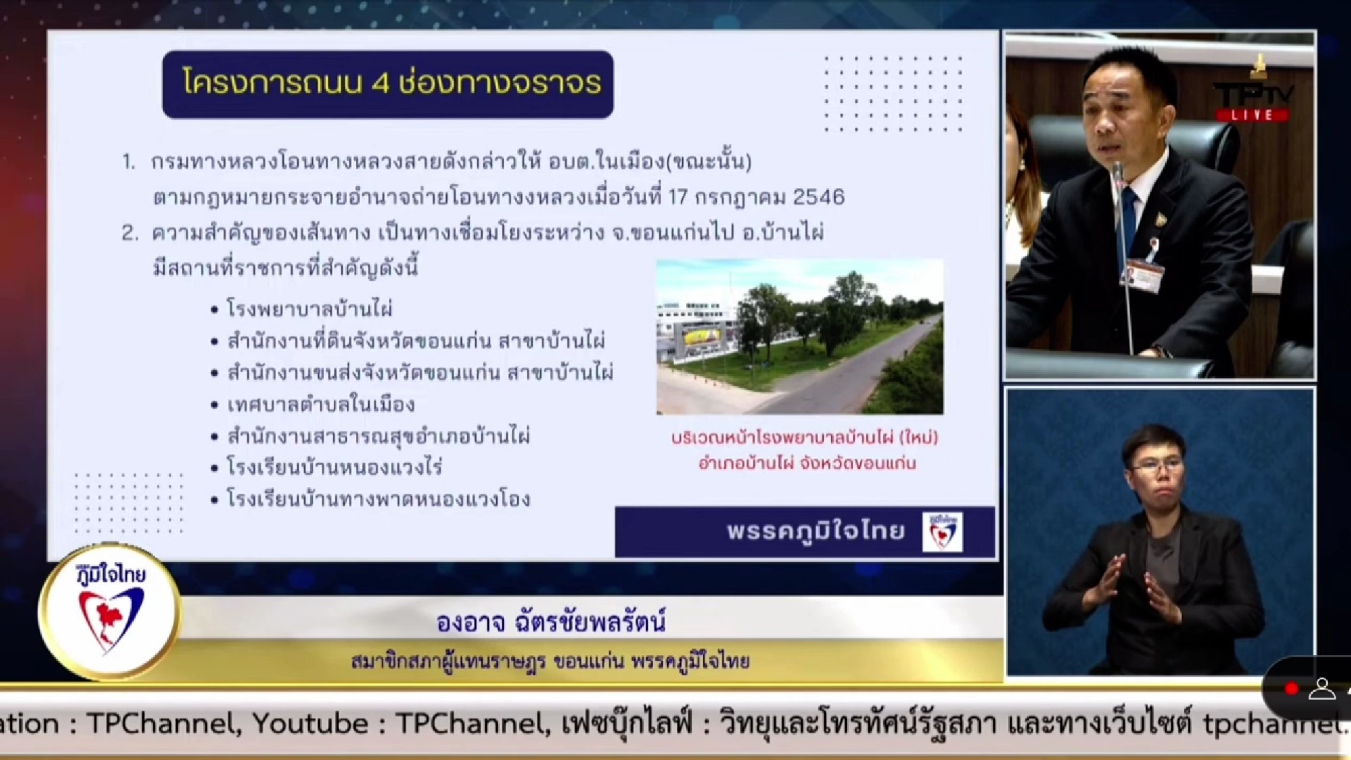 10 สิงหาคม 2566 นายองอาจ ฉัตรชัยพลรัตน์ สส.จังหวัดขอนแก่น เขต 11 พรรคภูมิใจไทย หารือในที่ประชุมสภาฯ ครั้งที่ 6 สำหรับเรื่องแรก คือ โครงการถนน 4 เลน ของอำเภอบ้านไผ่ หน้าโรงพยาบาลบ้านไผ่ ถนนเส้นดังกล่าว แรกเริ่มเป็นถนนของกรมทางหลวง และได้มีโอกาสโอนถ่ายมาเป็นของเทศบาลตำบลในเมือง ปัจจุบันถนนเส้นนี้เป็นถนนเส้นหลักของอำเภอบ้านไผ่ ประกอบกับสถานที่ราชการสำคัญหลายแห่ง โดยเฉพาะอย่างยิ่ง โรงพยาบาลบ้านไผ่จะได้รับประโยชน์จากถนนเส้นนี้เป็นอย่างมาก โดยถนนเส้นนี้รองรับผู้ป่วยที่มาใช้บริการโรงพยาบาลบ้านไผ่มากกว่าวันละ 549 ราย 1 เดือน 16,000 กว่าราย นอกจากนี้ ถนนเส้นนี้เป็นถนนสายหลักของอำเภอบ้านไผ่ ซึ่งกำลังเติบโตอย่างก้าวกระโดด บ้านไผ่กำลังเป็นเมืองศูนย์กลางของการคมนาคม เป็นศูนย์กลางขนส่ง และที่สำคัญคือบ้านไผ่กำลังจะกลายเป็นประตูสู่อินโดจีน ดังนั้นถนนเส้นนี้ เรารอคอยการโอนถ่ายจากคณะกรรมการกระจายอำนาจ ให้กับกรมทางหลวงซึ่งเป็นหน่วยงานเดิม และที่สำคัญคือ ตอนนี้มติของคณะกรรมการกระจายอำนาจได้มีมติให้โอนคืนทางหลวงหมายเลข 2228 ให้กับกรมทางหลวง เรียบร้อยแล้ว เหลือเพียงอยู่ระหว่างรอการพิจารณาของคณะกรรมการกระจายอำนาจชุดใหญ่ที่จะโอนถ่าย ดังนั้นเป็นความหวังของพี่น้องชาวอำเภอบ้านไผ่ที่จะโอนถนนเส้นนี้ให้กับกรมทางหลวง และเมื่อไหร่ก็ตามที่มีการโอนให้กับกรมทางหลวง กรมทางหลวงสามารถที่จะประสานงบประมาณในการก่อสร้างถนนจากเดิม 2 ช่องจราจรเป็น 4 ช่องจราจรได้