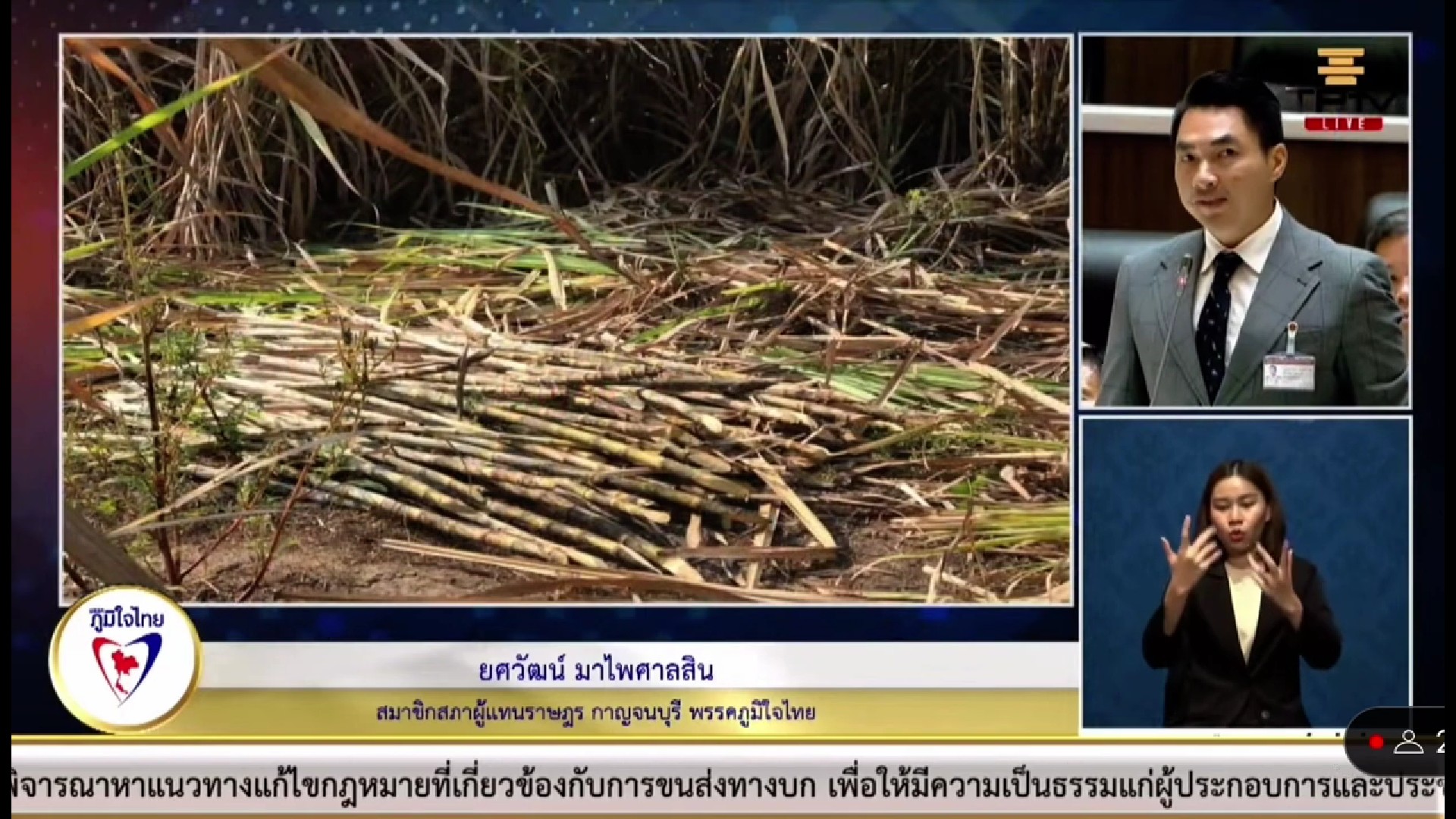 16 สิงหาคม 2566 เวลา 14:44“ยศวัฒน์” วอน ก.อุตฯ แก้ไขปัญหาความเดือดร้อน และเยียวยา ชาวไร่อ้อย จ.กาญจนบุรี อย่างเร่งด่วน16 สิงหาคม 2566 นายยศวัฒน์ มาไพศาลสิน สมาชิกสภาผู้แทนราษฎร จังหวัดกาญจนบุรี เขต 3 อ.ท่ามะกา - อ.พนมทวน พรรคภูมิใจไทย อภิปรายหารือถึงปัญหาความเดือดร้อนของพี่น้องชาวไร่อ้อย โดย จ.กาญฯ ถือได้ว่าเป็นเมืองหลวงแห่งน้ำตาลทราย แต่เมื่อ 2 ปีที่ผ่านมาประเทศไทย และทั่วโลกมีปัญหาเกี่ยวกับภาวะมลพิษทางอากาศ โดยเฉพาะบ้านเรา ก็คือ PM 2.5 ส่วนใหญ่ในฤดูกาลเก็บเกี่ยวผลผลิต หรือว่า ฤดู กาลตัดอ้อย จะมีปัญหาเกี่ยวกับทางอากาศมากเพราะว่าต้นทุนที่สูงของการเก็บเกี่ยวผลผลิตทำให้เกษตรกรชาวไร่ จำเป็นจะต้องจุดไฟเผาอ้อยเพื่อที่จะได้ลดค่าใช้จ่ายในต้นทุน เพราะว่าปัจจุบัน ด้วยเทคโนโลยีมีรถตัดอ้อย รถคีบอ้อย จึงทำให้จำเป็นที่จะต้องลดต้นทุน เนื่องจากมีค่าใช้จ่ายจากพลังงาน ค่าน้ำมันที่สูงขึ้น ที่ ไม่เคยลด แล้วยังรวมถึงค่าปุ๋ย ค่ายา เพราะฉะนั้น ทางเลือกนี้เป็นทางเลือกที่ เกษตรกรชาวไร่อ้อยได้ใช้ แต่เมื่อ 2 ปีนั้น รัฐบาลมีนโยบายขอความร่วมมือที่จะให้เกษตรกรชาวไร่อ้อยนั้นได้ช่วยลดปัญหา PM 2.5 นั่นก็คือ จะชดเชยรายได้ให้ กับเกษตรกรชาวไร่อ้อย แต่วันนี้ ความมั่นใจของพี่น้องชาวเกษตรกรลดลง เพราะ เมื่อปีงบประมาณปี 2564 / 65 เงินเยียวยาที่ทางรัฐบาลนั้นจะมอบให้กับพี่น้อง ชาวไร่อ้อย ไม่เป็นไปตามที่ได้พูดเอาไว้ คือ ล่าช้า ส่งผลทำให้เกษตรกรมีต้นทุน ที่สูงกว่าเดิม ส่วนใหญ่จะต้องไปกู้จากธนาคาร กู้จากเถ้าแก่ต่างๆ เพราะฉะนั้น ปีนี้จึงฝากไปยังกระทรวงอุตสาหกรรม และผู้ที่เกี่ยวข้อง โดยเฉพาะ คณะ ครม. ให้ช่วยพิจารณาแล้วก็มอบนโยบายที่ชัดเจน ไม่ใช่ขอความอนุเคราะห์จากชาวไร่ ก่อน แล้วถึงมาให้งบประมาณ หรือว่าเงินชดเชยเยียวยาอ้อยทีหลัง ล่าสุดเกษตรกรบอกว่า หลังจากนั้นนโยบายออกมาว่า หากมีเกษตรกรรายไหน ที่มีอ้อยไฟไหม้ จะไม่ให้เงินเยียวยาเลย ซึ่งแบบนี้ถือว่าเป็นการหักหลังเกษตรกรหรือไม่ นายยศวัฒน์ กล่าวทิ้งท้าย แชร์บทความนี้: