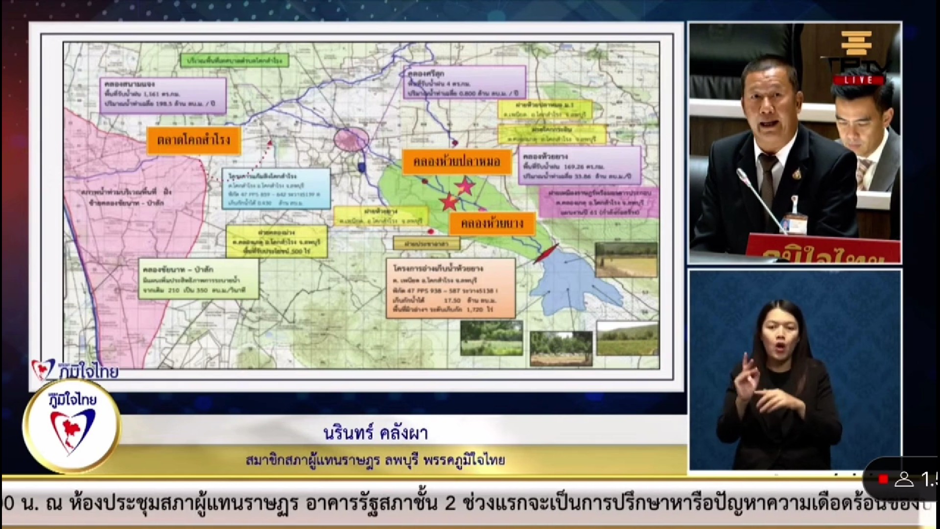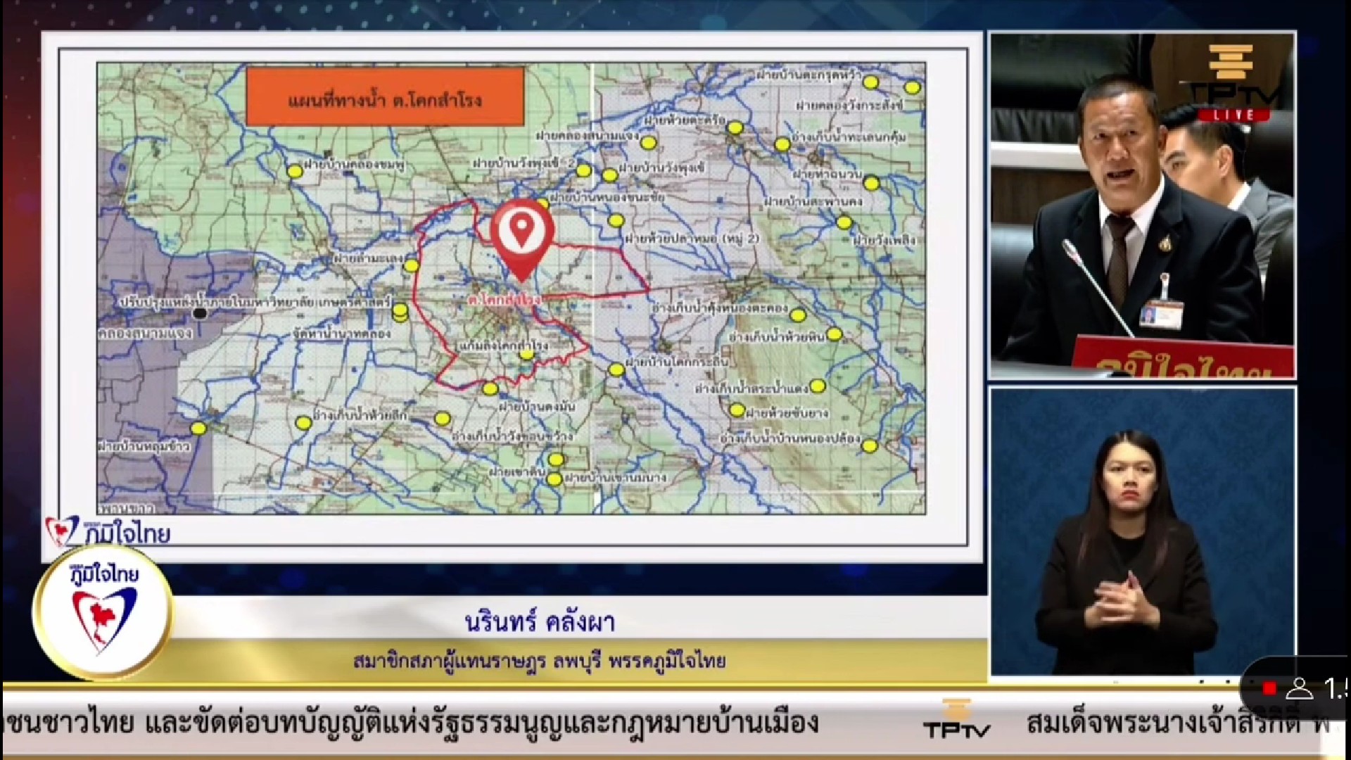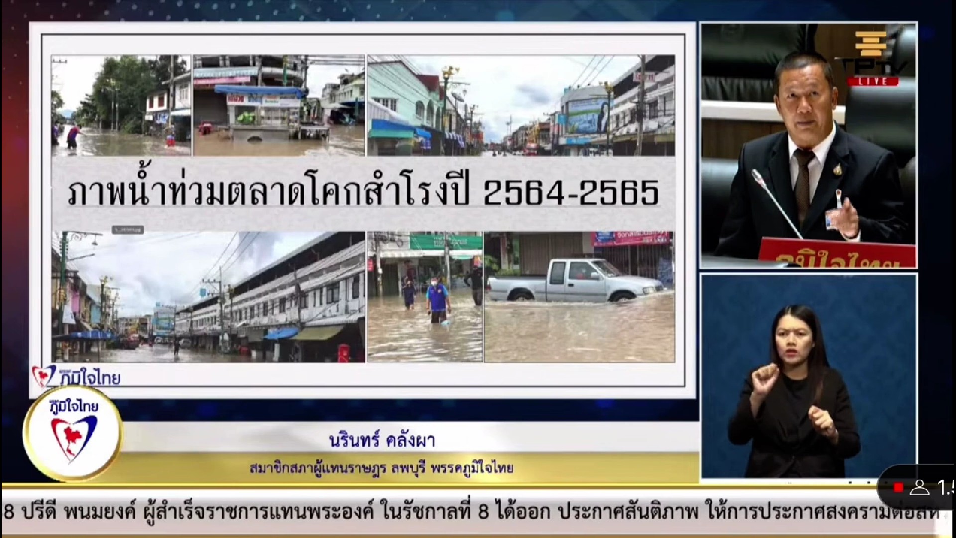 โดยนายนรินทร์ ได้กล่าวถึงเรื่องปัญหาน้ำท่วมตลาดโคกสำโรง ปี 64-65 ว่า ในช่วงฤดูฝนตกหนัก น้ำจากภูเขาช่วงทิศตะวันออกเฉียงใต้ จะไหลลงคลองห้วยยาง และมายังตลาดโคกสำโรงอย่างรวดเร็ว เกิดน้ำท่วมฉับพลัน สร้างความเสียหายให้กับประชาชนในพื้นที่อย่างมาก แนวทางการแก้ไขอยากจะฝากไปยังกรมชลประทาน ให้สร้างฝายกั้นน้ำ 3-4 จุด เพื่อให้น้ำได้ลงไปยังคลองด้านอื่น รวมทั้งการขุดลอกคลองเพื่อรองรับน้ำ จากคลองห้วยยาง ไปยังคลองห้วยปลาหมอ มีพื้นที่ฝายน้ำบริเวณ ม.3 ต.เกาะแก้ว ที่สามารถทำเป็นโครงการแก้มลิงได้ ขนาด 20 ไร่ เพื่อเก็บกักน้ำ ไม่ให้ลงไปยังที่ลุ่มต่ำ ต.โคกสำโรง ต.ถลุงเหล็ก ต.วังจั่น และ อ.บ้านหมี่ บางส่วน