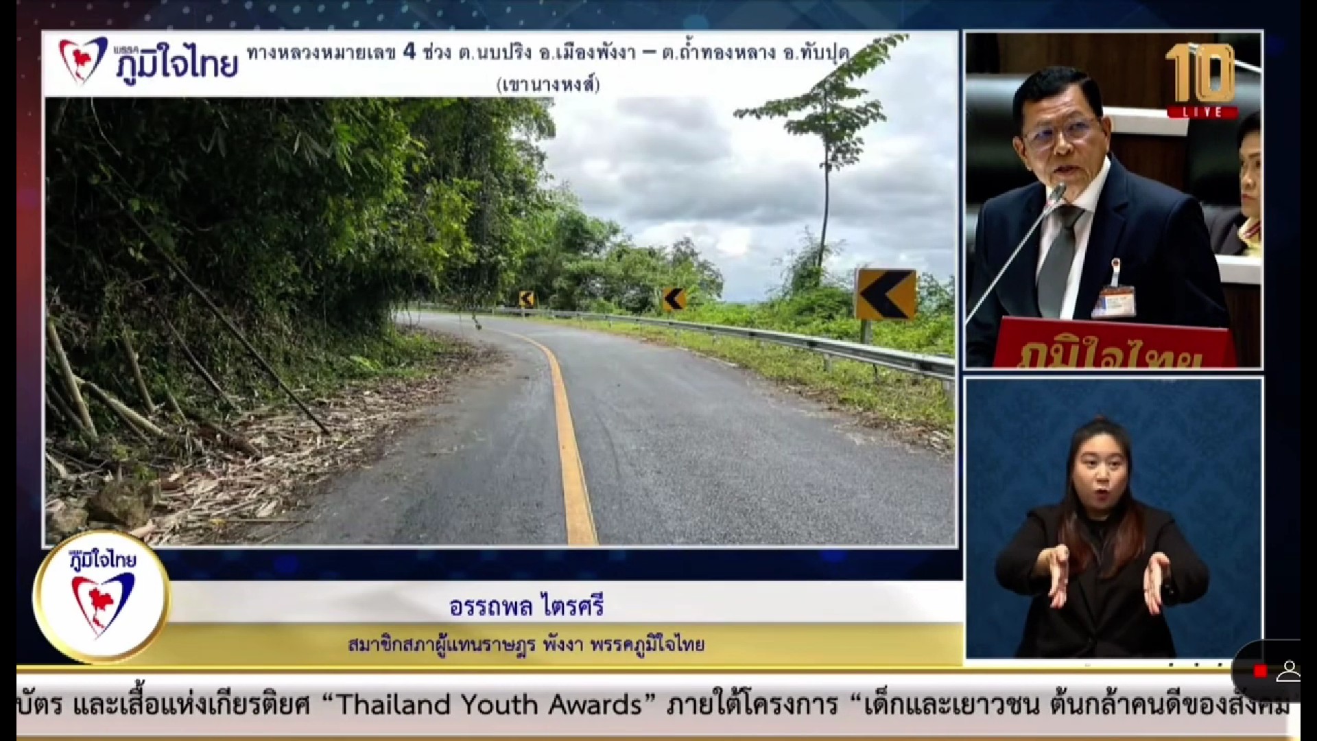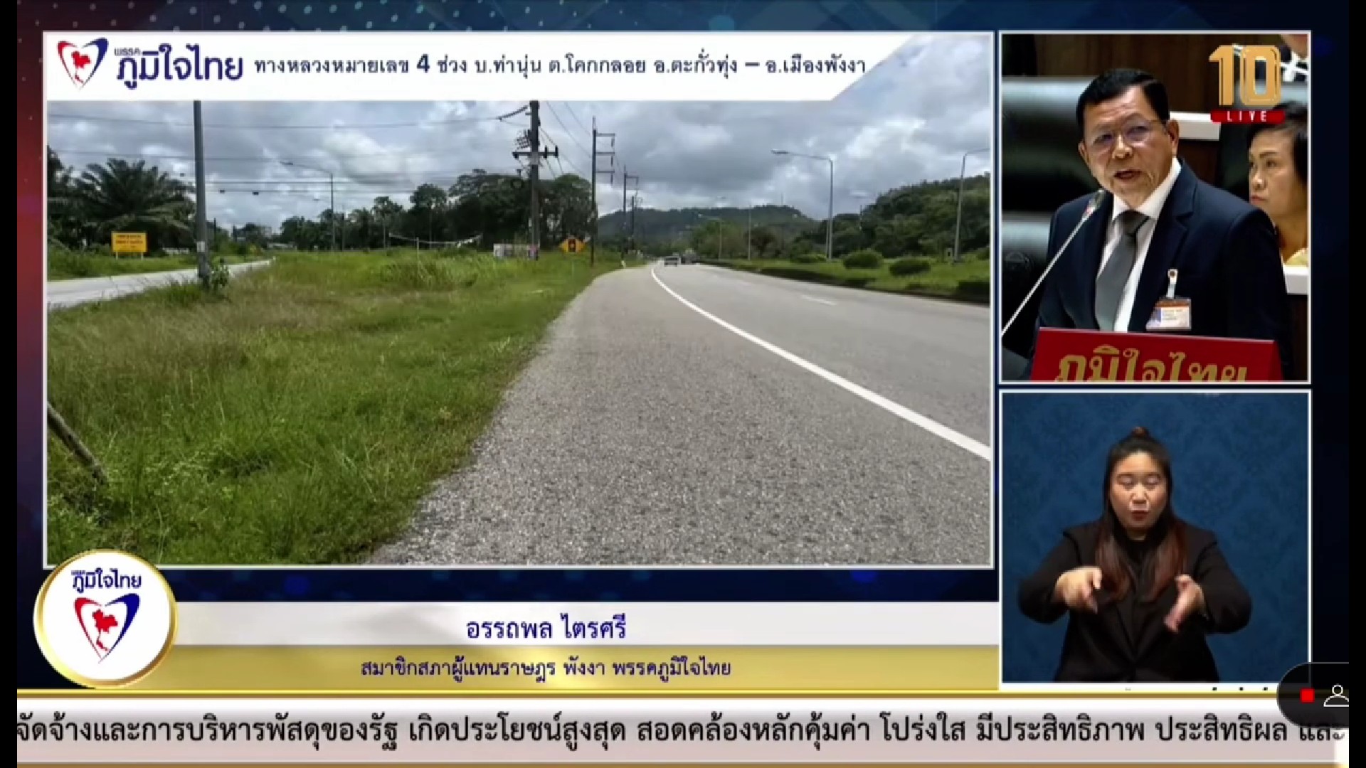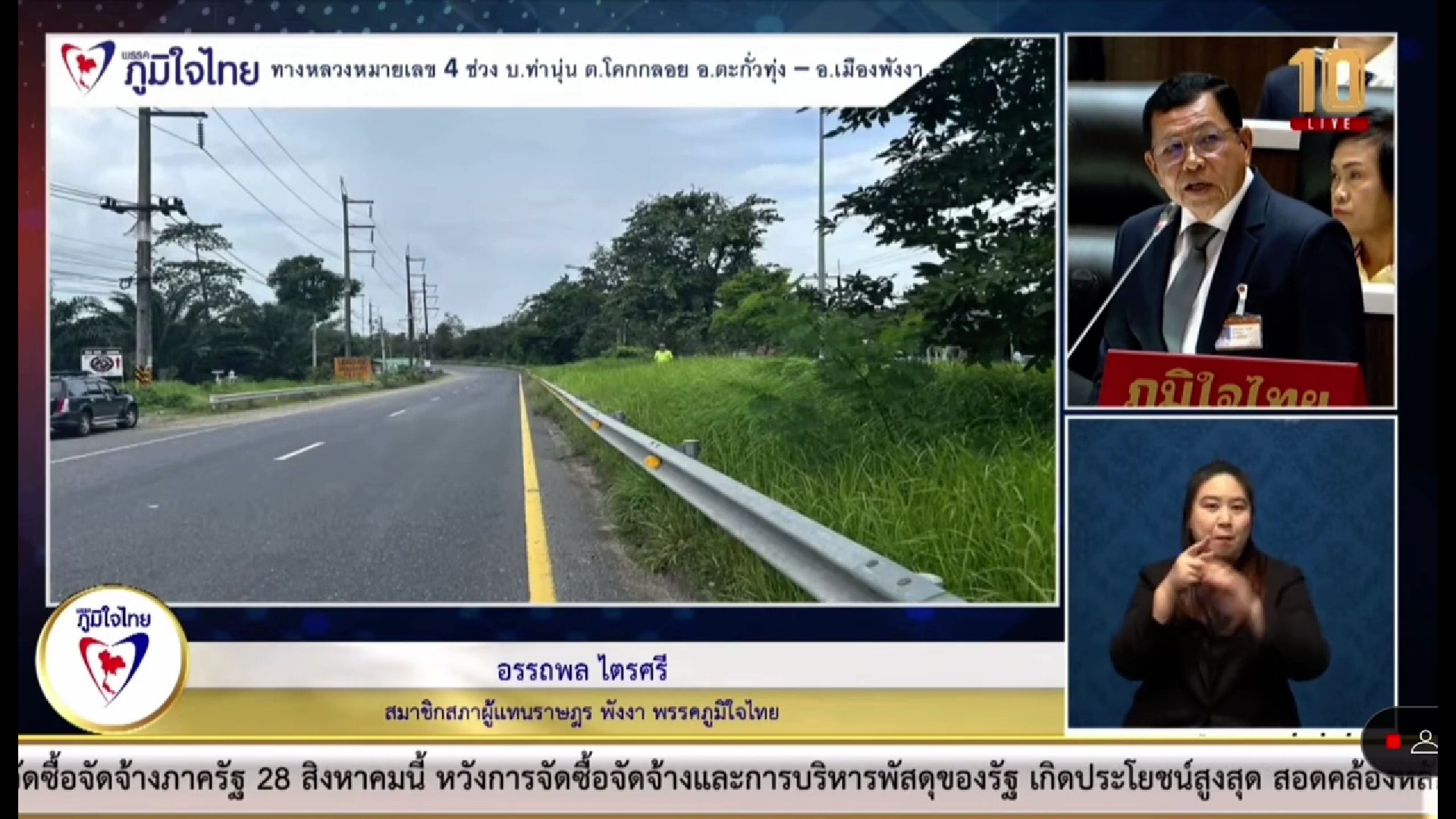 วันที่ 16 สิงหาคม 2566 นายอรรถพล ไตรศรี สมาชิกสภาผู้แทนราษฎรจังหวัดพังงา เขต 1 พรรคภูมิใจไทย หารือถึงปัญหาในจังหวัดพังงาด้วยกัน 2 เรื่อง โดยเรื่องแรก คือเรื่องเกี่ยวกับการกำจัดวัชพืชบนเกาะกลางถนน อ.ตะกั่วทุ่ง - อ.เมือง จ.พังงา ซึ่งแขวงการทางจังหวัดพังงา ได้มีการประกาศให้เป็นแขวงจังหวัดพังงา เมื่อปี 2558 และทางหลวงทั้งหมดของจังหวัดพังงา อยู่ในความดูแลของแขวงจังหวัดภูเก็ตด้วย โดยเฉพาะอำเภอตะกั่วทุ่ง - อ.ท้ายเหมือง - อ.ตะกั่วป่า - อ.กะปง ซึ่งจังหวัดพังงาเป็นจังหวัดท่องเที่ยว มีรายได้จากการท่องเที่ยวติดอันดับ 1-10 จากรายได้งบประมาณในปี 62 จะเห็นได้ว่า ถนนทั้ง 2 ข้างทาง ไม่มีการตกแต่ง หรือตัดแต่งต้นไม้แต่อย่างใด จึงอยากให้แขวงทางหลวงภูเก็ต และแขวงทางหลวงพังงา ที่รับผิดชอบถนนสายนี้ให้เข้ามาดูแลรับผิดชอบด้วย