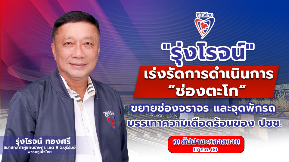 นายรุ่งโรจน์ ทองศรี สมาชิกสภาผู้แทนราษฎร จังหวัดบุรีรัมย์ อภิปรายหารือในสภาฯ ครั้งที่ 8 โดยนำปัญหาความเดือดร้อนของพี่น้องสู่การแก้ไข เรื่องที่ 1 คือ เรื่องช่องตะโกเป็นเรื่องที่พี่น้องเดือดร้อนมาก ซึ่งเคยได้พูดเรื่องช่องตะโกในสภาสมัยที่แล้วไม่น้อยกว่า 20 ครั้ง ช่องตะโกบนทางหลวงหมายเลข 348 เป็นประตูเชื่อมภาคอีสานตอนล่างกับภาคตะวันออก เป็นเส้นทางโลจิสติกส์ที่สำคัญ รถวิ่งเป็นจำนวนมาก ทำให้มีอุบัติเหตุแทบทุกวัน ชีวิตและทรัพย์สินของพี่น้องเสียหายนับไม่ถ้วน