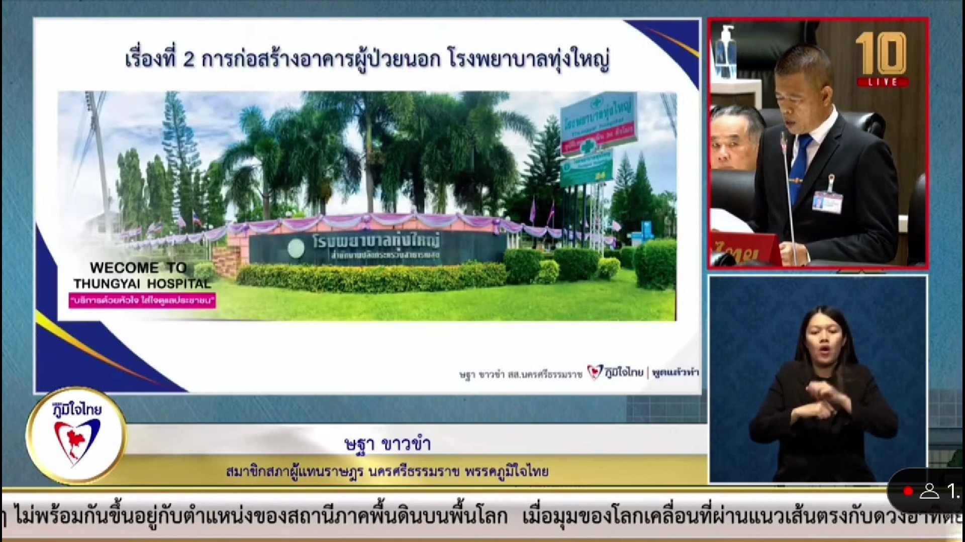 เรื่องที่ 2 การก่อสร้างอาคารผู้ป่วยนอก ของโรงพยาบาลทุ่งใหญ่ ซึ่งทางโรงพยาบาลทุ่งใหญ่ เป็นโรงพยาบาลขนาด 60 เตียง ต้องรองรับประชาชนในพื้นที่ของอำเภอทุ่งใหญ่ และอำเภอข้างเคียงประมาณ 9 หมื่นคน อาคารที่มีอยู่ในปัจจุบันนี้ไม่เพียงพอ ต่อมาได้มีการจัดสรรงบประมาณในการก่อสร้างอาคารผู้ป่วยนอก โดยทำสัญญากับผู้รับจ้างในวงเงิน 78 ล้านบาทเมื่อวันที่ 23 กันยายน 2565 สิ้นสุดวันที่ 4 กรกฎาคม 2567 เป็นเวลา 650 วัน ทั้งนี้เวลาล่วงเลยมา 334 วันมีเพียงร่องรอยของการปรับพื้นที่เท่านั้นเหลือเวลาอีก 316 วันจึงต้องเร่งรัดดำเนินการให้แล้วเสร็จโดยด่วน เพื่อให้เกิดประโยชน์กับพี่น้องประชาชนอย่างแท้จริง
