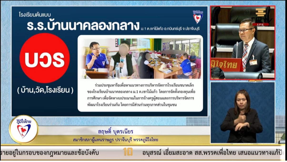 ต่อมาได้มีการเสนอแนวทางการแก้ไขปัญหาโรงเรียนขนาดเล็ก ซึ่งปัจจุบันมีจำนวนถึง 7,000 โรงทั่วประเทศ โดยเห็นว่า สสส. ควรสนับสนุนให้ภาคส่วนต่างๆ ร่วมกันแก้ไขปัญหานี้ โดยนำแนวคิดการสานพลังจากภาครัฐ ภาคสังคม และภาคประชาชน มาประยุกต์ใช้ เช่น แนวทาง "บวร" (บ้าน วัด โรงเรียน) ยกตัวอย่าง โรงเรียนบ้านคลองกลาง อำเภอกบินทร์บุรี จังหวัดปราจีนบุรี ที่ได้แก้ไขปัญหาโดยการประสานร่วมมือกันระหว่างผู้ใหญ่บ้าน คณะสงฆ์ และชุมชน ซึ่งประสบความสำเร็จเป็นอย่างดี นายสฤษดิ์ กล่าว