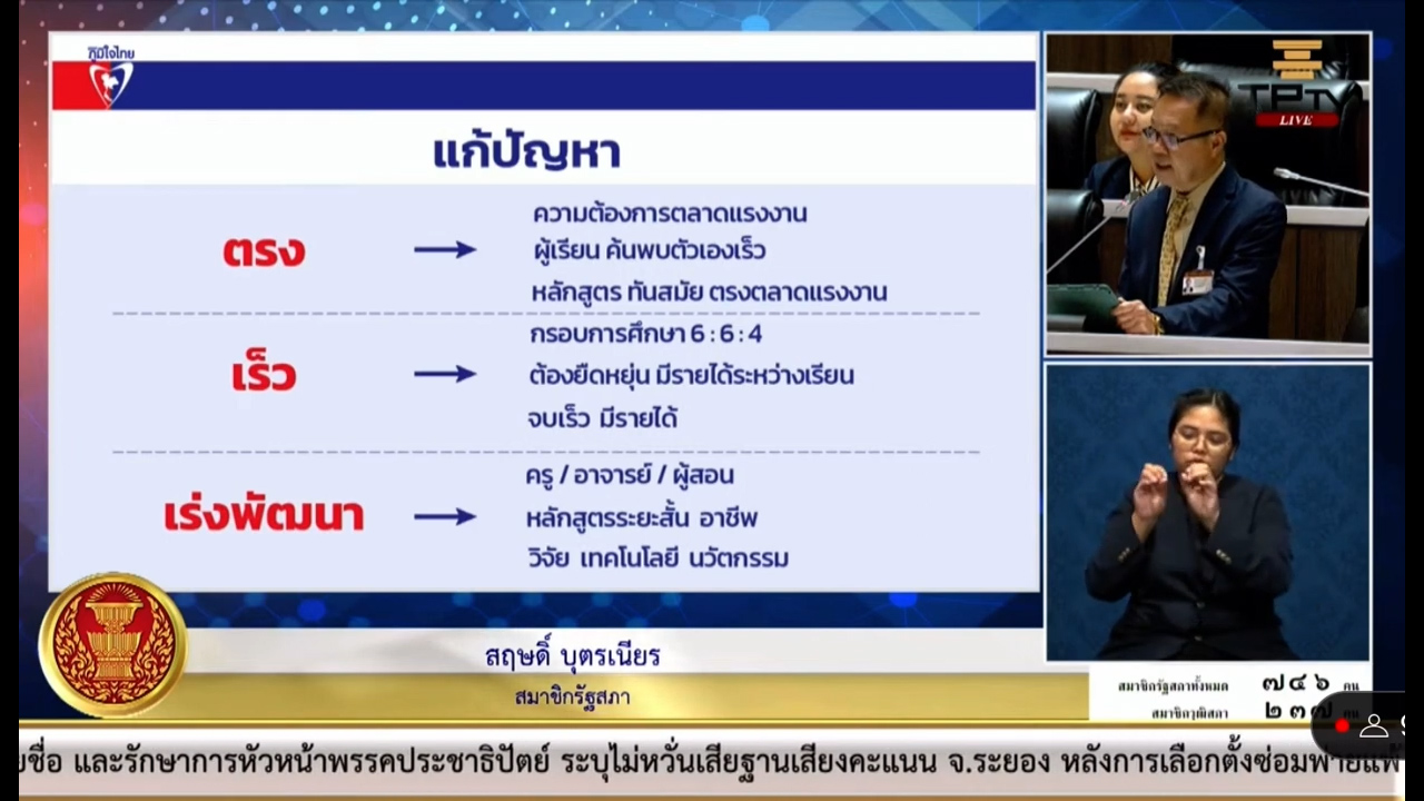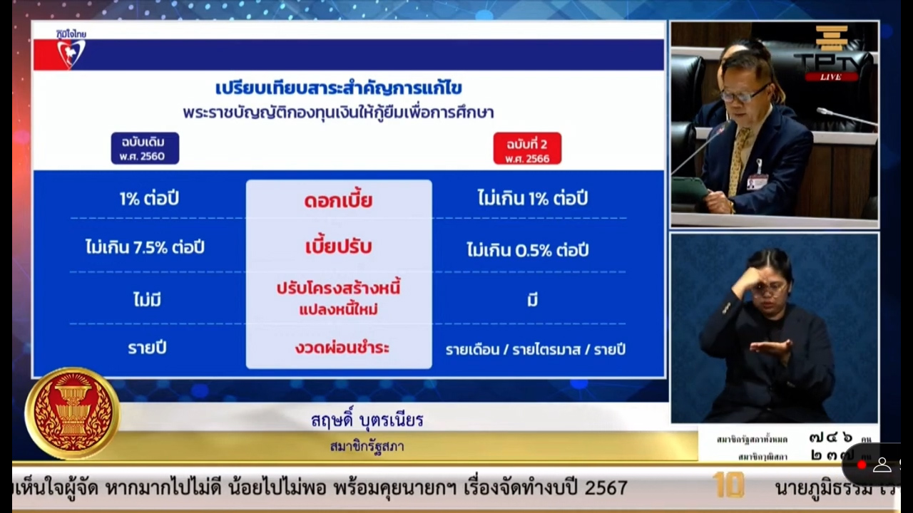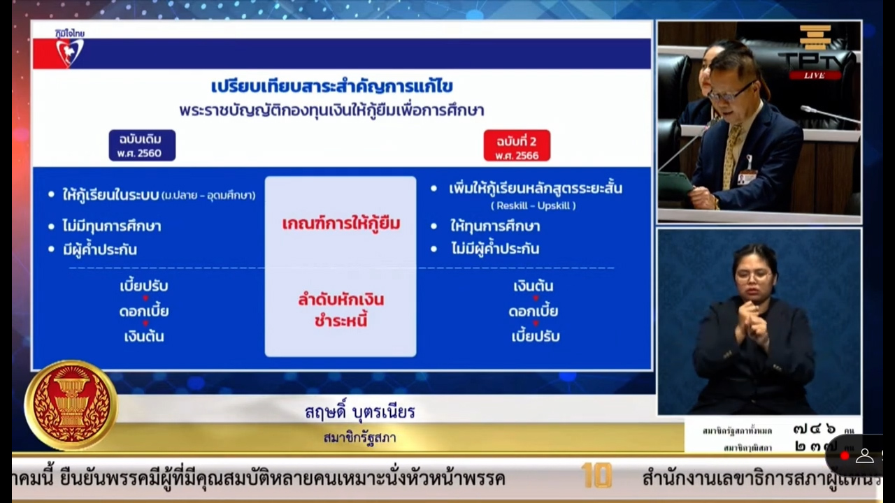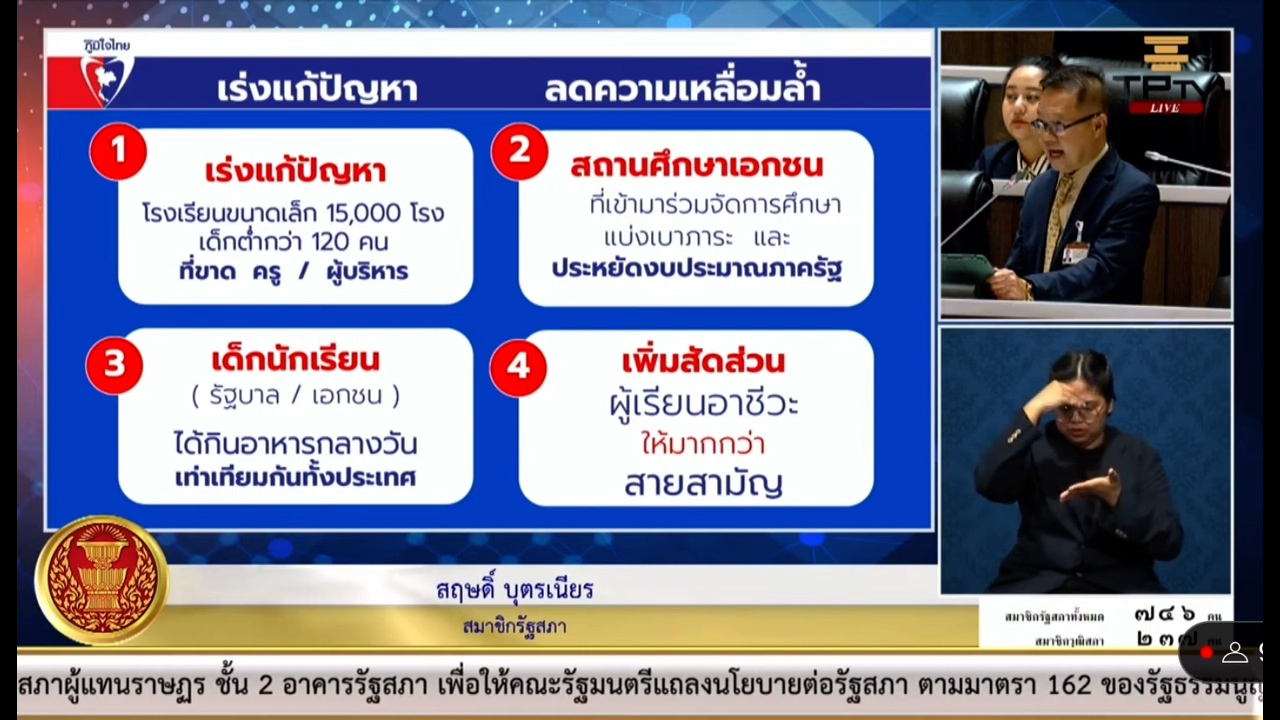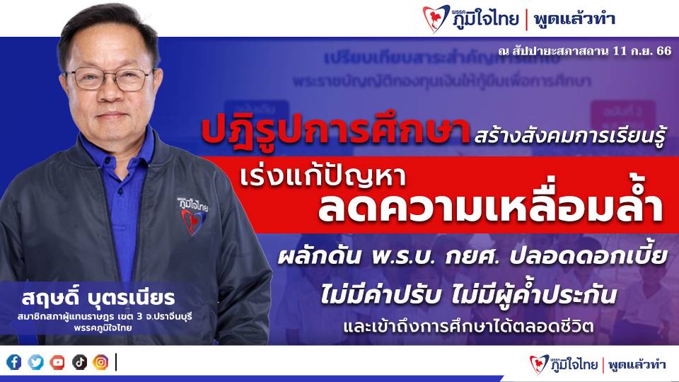 พรรคภูมิใจไทยให้ความสำคัญกับการศึกษามาโดยตลอด ผ่านการออกพระราชบัญญัติส่งเสริมการเรียนรู้ ซึ่งเปิดโอกาสให้ทุกช่วงวัยสามารถเข้าถึงการศึกษาตลอดชีวิต ทั้งหลักสูตรระยะสั้น มีรายได้ระหว่างเรียน และสามารถเพิ่มทักษะความรู้ความสามารถได้ และจะผลักดันนโยบายกองทุนกู้ยืมเพื่อการศึกษา (กยศ.) เพื่อให้ผู้เรียนสามารถเข้าถึงกองทุนเพื่อพัฒนาคุณภาพชีวิต ปลอดดอกเบี้ย ปลอดค่าปรับต่อไป นายสฤษดิ์ กล่าวทิ้งท้าย.