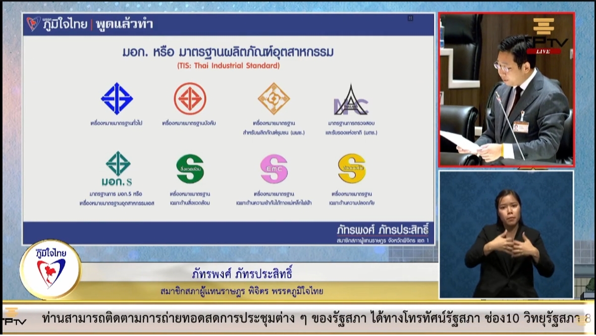 เรื่องสุดท้าย ปัญหามาตรฐานอุตสาหกรรมไทยโดยเฉพาะเครื่องใช้ไฟฟ้า ต้องผ่านมาตรฐานอุตสาหกรรม (มอก.) แต่สินค้าอุตสาหกรรมที่นำเข้าจากต่างประเทศบางรายการไม่มีมาตรฐาน หรือมีมาตรฐานต่ำกว่าที่กำหนด ส่งผลให้ผู้ประกอบการไทยทำธุรกิจลำบาก และผู้บริโภคอาจได้รับอันตรายจากการใช้สินค้าที่ไม่ได้มาตรฐาน ฉะนั้นกระทรวงอุตสาหกรรม ต้องเข้มงวดการนำเข้าสินค้าที่ไม่ได้มาตรฐาน พัฒนาระบบการตรวจสอบสินค้านำเข้า และสนับสนุนผู้ประกอบการไทยให้ผลิตสินค้าที่ได้มาตรฐาน.