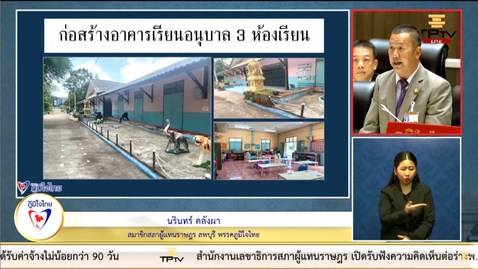 ในประเด็นได้กล่าวถึง เรื่องอาคารอนุบาล 3 ห้องเรียน ของโรงเรียนเกาะสำโรง ที่ปรับปรุงจากสำนักงานของสำนักงานประถมศึกษาเพื่อใช้ในการเรียนการสอน แต่กลับไม่มีความเหมาะสมในการเรียน และได้ขอให้ทางกระทรวงศึกษาได้จัดห้องเรียนอนุบาล 3 ห้องเรียน ให้กับโรงเรียนโคกสำโรง นายนรินทร์ กล่าว