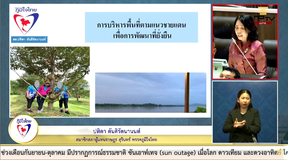 นางปทิดา ตันติรัตนานนท์ สมาชิกสภาผู้แทนราษฎร จังหวัดสุรินทร์ เขต 8 พรรคภูมิใจไทย ได้ติดตามเรื่องพื้นที่วอเตอร์แพลนท์ซิตี้ ในพื้นที่ตำบลบักได ในการประชุมสภาผู้แทนราษฎร ครั้งที่ 19 ณ สัปปายะสภาสถาน