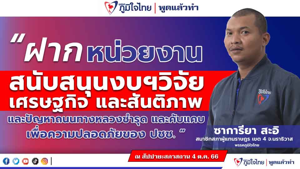 โดยนายซาการียา กล่าว่า ขอให้ทางกระทรวงอุดมศึกษา วิทยาศาสตร์ วิจัยและนวัตกรรม (อว.) และหน่วยงานที่เกี่ยวข้อง ช่วยสนับสนุนงบประมาณวิจัยในเรื่องเศรษฐกิจในพื้นที่และเรื่องสันติภาพ เพื่อแก้ไขปัญหาความรุนแรงและสร้างสันติภาพในพื้นที่อย่างยั่งยืน