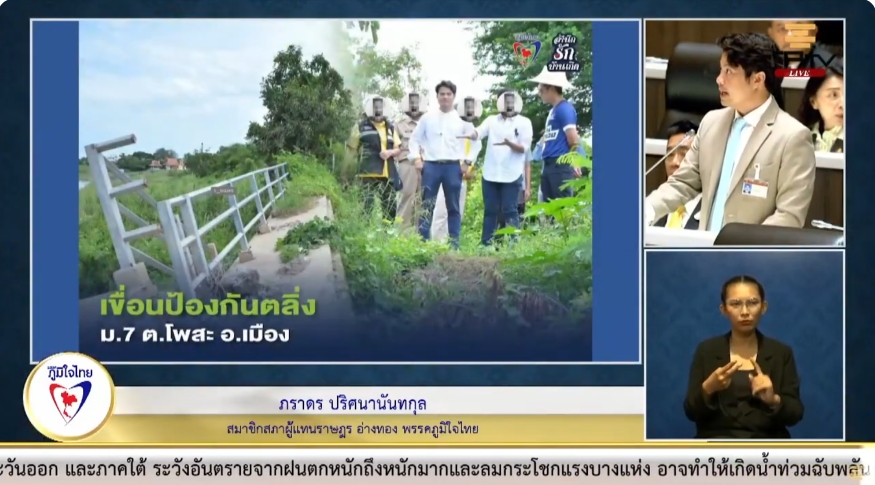 โดยนายภราดร ได้เรียกร้องให้กรมโยธาธิการและผังเมืองเร่งสำรวจและจัดสรรงบประมาณเพื่อซ่อมแซมเขื่อนป้องกันตลิ่งที่ชำรุดทรุดโทรมบริเวณหมู่ที่ 7 ตำบลโพสะ และหมู่ที่ 2 ตำบลป่าโมก จังหวัดอ่างทอง โดยเขื่อนป้องกันตลิ่งดังกล่าวมีความสำคัญในการป้องกันการกัดเซาะตลิ่งและป้องกันน้ำท่วมในพื้นที่