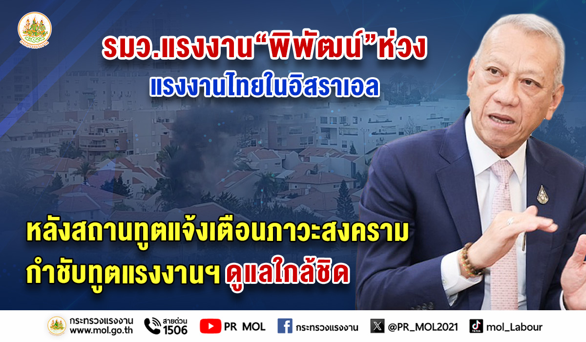 “ขอให้ญาติของแรงงานไทยที่ไปทำงานในประเทศอิสราเอล อย่าเพิ่งตื่นตระหนก ขอให้มั่นใจว่า รัฐบาลไทยทั้งสถานทูตและกระทรวงแรงงานจะให้การคุ้มครอง ดูแล อย่างดีที่สุด และจะเร่งติดตามสถานการณ์อย่างใกล้ชิด และขอให้แรงงานไทยที่ทำงานอยู่ในอิสราเอลที่ได้รับผลกระทบดังกล่าว ปฏิบัติตามมาตรการของทางการอิสราเอลอย่างเคร่งครัด และแจ้งข้อมูลมายังฝ่ายแรงงาน ประจำสถานเอกอัครราชทูต ณ กรุงเทลอาวีฟ เพื่อจะได้วางแผนในการให้ความช่วยเหลือต่อไป” นายพิพัฒน์ กล่าวท้ายสุด