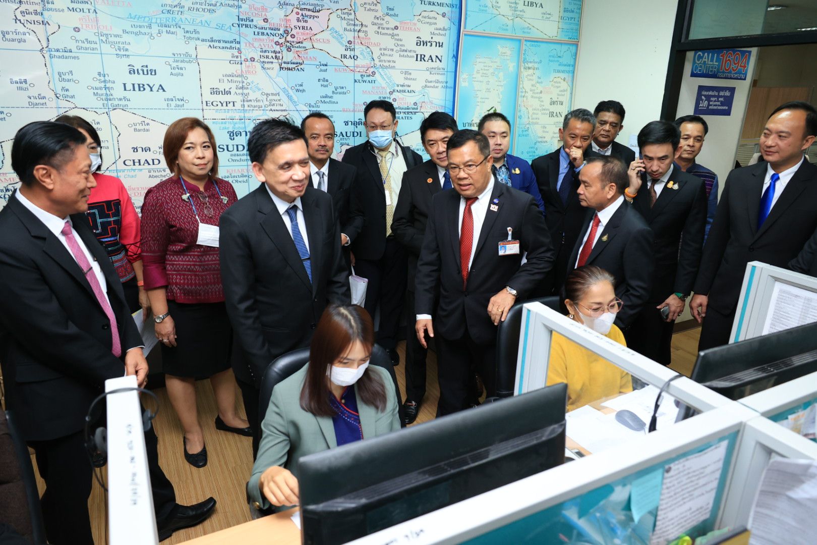 ในการนี้ ปลัดกระทรวงแรงงาน ยังได้นำคณะกรรมาธิการการแรงงานตรวจเยี่ยมให้บริการของสายด่วนกรมการจัดหางาน 1694 ตลอด 24 ชั่วโมง และ “ศูนย์ช่วยเหลือแรงงงานและติดตามสถานการณ์สู้รบในอิสราเอล กระทรวงแรงงาน” ซึ่งตั้งอยู่บริเวณชั้น 11 และชั้นล่างอาคารกระทรวงแรงงาน เพื่อรับข้อมูลและประสานข้อมูลไปยังหน่วยงานที่เกี่ยวข้องอีกด้วย
