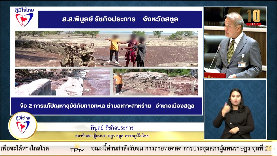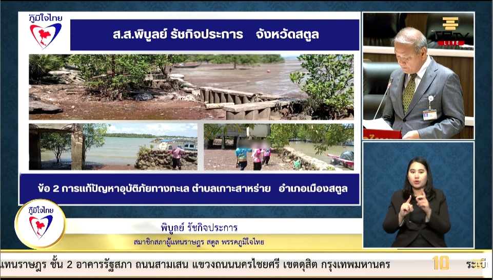 วันที่ 11 ตุลาคม 2566 นายพิบูลย์ รัชกิจประการ สมาชิกสภาผู้แทนราษฎรจังหวัดสตูล เขต 1 พรรคภูมิใจไทย ได้นำปัญหาความเดือดร้อนของพี่น้องประชาชนในพื้นที่ เข้าหารือในการประชุมสภาผู้แทนราษฎร ครั้งที่ 21