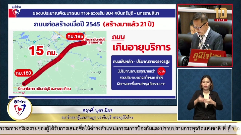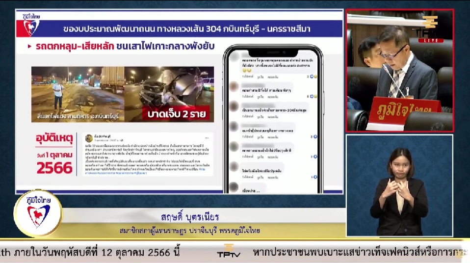 นายสฤษดิ์ ได้รับคำร้องจากผู้นำท้องถิ่นว่า ถนนทางหลวงหมายเลข 304 ฉะเชิงเทรา-นครราชสีมา ตลอดเส้นทาง โดยเฉพาะ 15 กิโลเมตร จากศูนย์นิคมฯไฮเทค และพัฒนาการเกษตร ถึงสี่แยกสามทหาร มีสภาพขรุขระเป็นหลุมเป็นบ่อ ก่อให้เกิดอันตรายต่อยานพาหนะที่ผ่านไปมา ส่งผลให้เกิดอุบัติเหตุบ่อยครั้ง โดยเฉพาะเมื่อวันที่ 1 ตุลาคม 2566 ที่ผ่านมา มีรถกระบะบรรทุกสินค้า ขับมาด้วยความเร็วในคืนมืด เกิดอุบัติเหตุชนกับเสาไฟฟ้า มีผู้ได้รับบาดเจ็บสาหัส