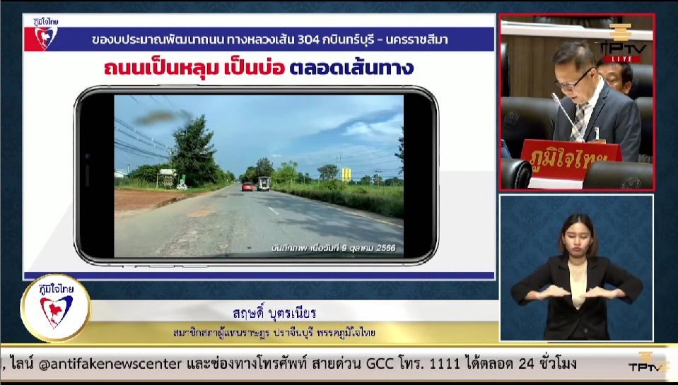 ขอให้กระทรวงคมนาคม ให้เร่งดำเนินการซ่อมแซมถนนดังกล่าว เพื่อให้สามารถใช้งานได้อย่างปลอดภัย เนื่องจากเป็นพื้นที่ที่มีรถวิ่งผ่านเป็นจำนวนมาก โดยเฉพาะในช่วงเทศกาลต่างๆ เช่น ลอยกระทง ออกพรรษา และปีใหม่