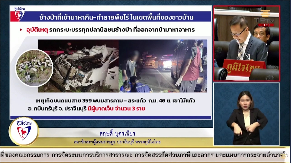 ขอให้กรมอุทยานแห่งชาติ สัตว์ป่า และพันธุ์พืช กระทรวงทรัพยากรธรรมชาติและสิ่งแวดล้อม พิจารณาหาแนวทางแก้ไขปัญหาช้างป่า รวมถึงหาแนวทางป้องกันไม่ให้ชาวบ้านที่ขับรถผ่านไปมาบนถนนสาย 359