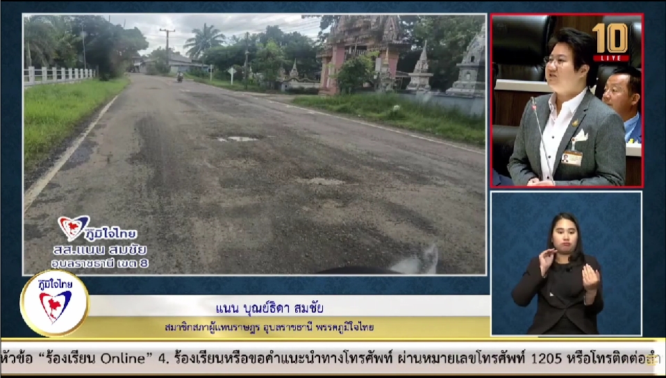 ขอเรียนท่านประธานผ่านไปยังกรมทางหลวงชนบท ให้เร่งดำเนินการซ่อมแซมถนนดังกล่าวอย่างจริงจัง เพื่อให้ประชาชนสามารถสัญจรได้อย่างปลอดภัย