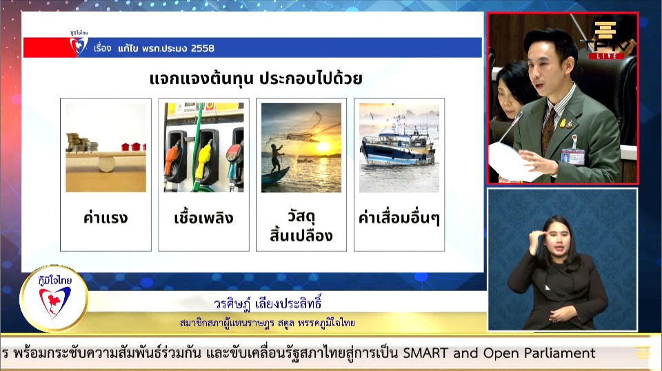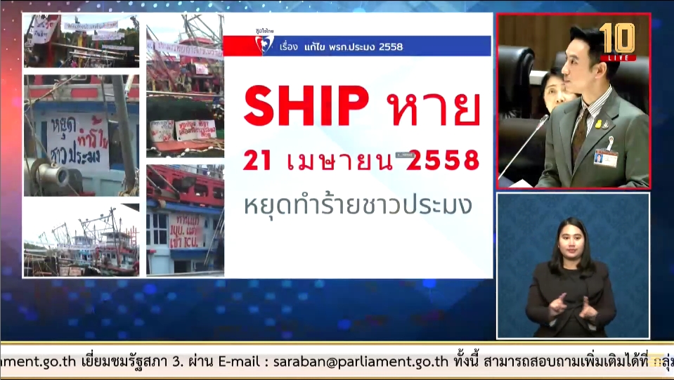 " สุดท้ายสิ่งที่เกิดขึ้นจากกฎหมายที่ไม่มีความเป็นธรรม อุตสาหกรรมประมงไทยทั้งระบบเจ๊ง กฎหมายที่ออกมาทำให้พี่น้องชาวประมงทำประมงไม่ได้ มีต้นทุนที่สูงขึ้น เรือ ห้องเย็น เจ๊งไปหายไป มากกว่าครึ่งในประเทศ จากนั้นเกิดโดมิโนเอฟเฟค ถึงตลาดปลา และแรงงานที่ขาดหายไป"