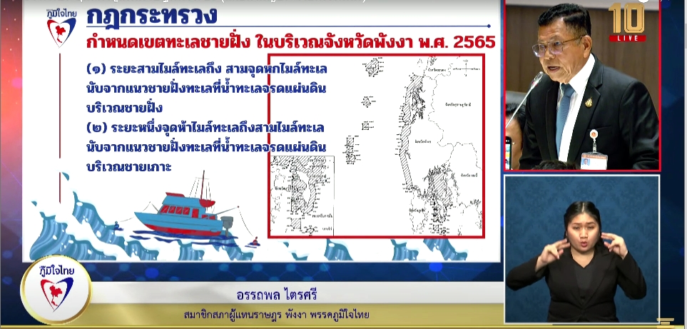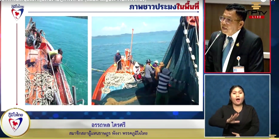 อรรถพล ไตรศรี สมาชิกสภาผู้แทนราษฎรจังหวัดพังงา เขต 1 พรรคภูมิใจไทย อภิปรายการยื่นญัตติให้สภาฯ แต่งตั้งกรรมาธิการเพื่อที่จะศึกษาปัญหาการทำประมงทั้งระบบ ในการประชุมสภาผู้แทนราษฎร ครั้งที่ 23