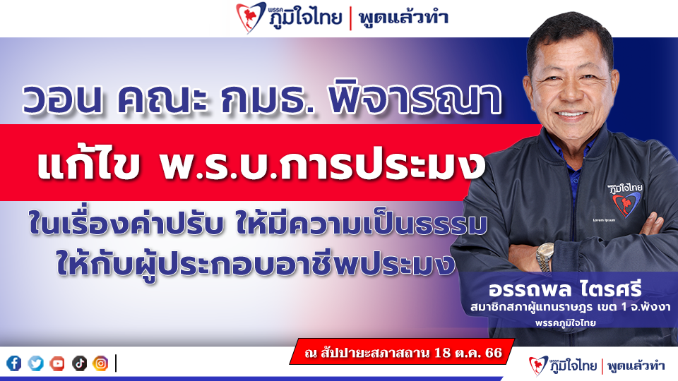 “อรรถพล” วอนคณะ กมธ. พิจารณาแก้ พ.ร.บ. การประมงในเรื่องค่าปรับให้มีความเป็นธรรมให้กับผู้ประกอบอาชีพประมง