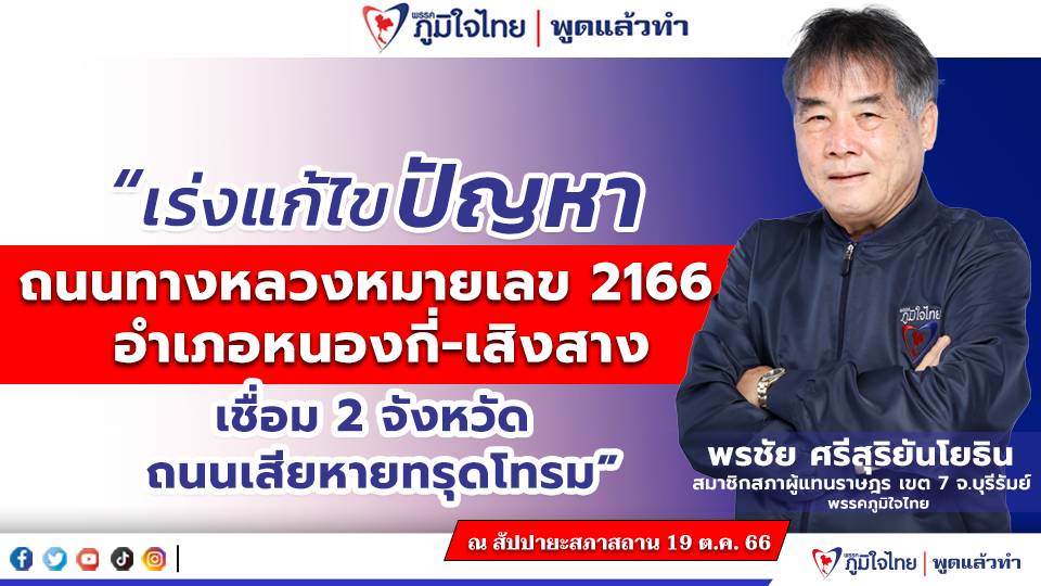 โดยนายพรชัย กล่าวว่า ความเดือดร้อนของพี่น้องประชาชนในการใช้ถนนสัญจรถนนหมายเลข 2166 ที่เชื่อม 2 จังหวัด เริ่มตั้งแต่บ้านโนนศรีคูณ ต.หนองหงส์ มาถึงอำเภอหนองกี่ ถึง อ.เสิงสาง กับ อ.ครบุรี จ.นครราชสีมา ต่อมาได้รับการร้องขอจากผู้นำชุมชนทั้งท้องที่ และท้องถิ่นให้ลงไปสำรวจถนนเส้นนี้เป็นถนนสองเส้น สองช่องจราจร ช่องจราจรสร้างมานานหลาย 10 ปี