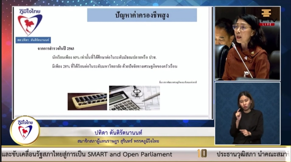 “สส.ปทิดา ตันติรัตนานนท์” ขอให้สภาตั้งคณะกรรมาธิการพิจารณาศึกษาปัญหาหนี้สิน ครัวเรือนและค่าครองชีพสูงเพื่อเป็นการช่วยเหลือครอบครัวที่มีรายจ่ายด้านการศึกษาของเยาวชน