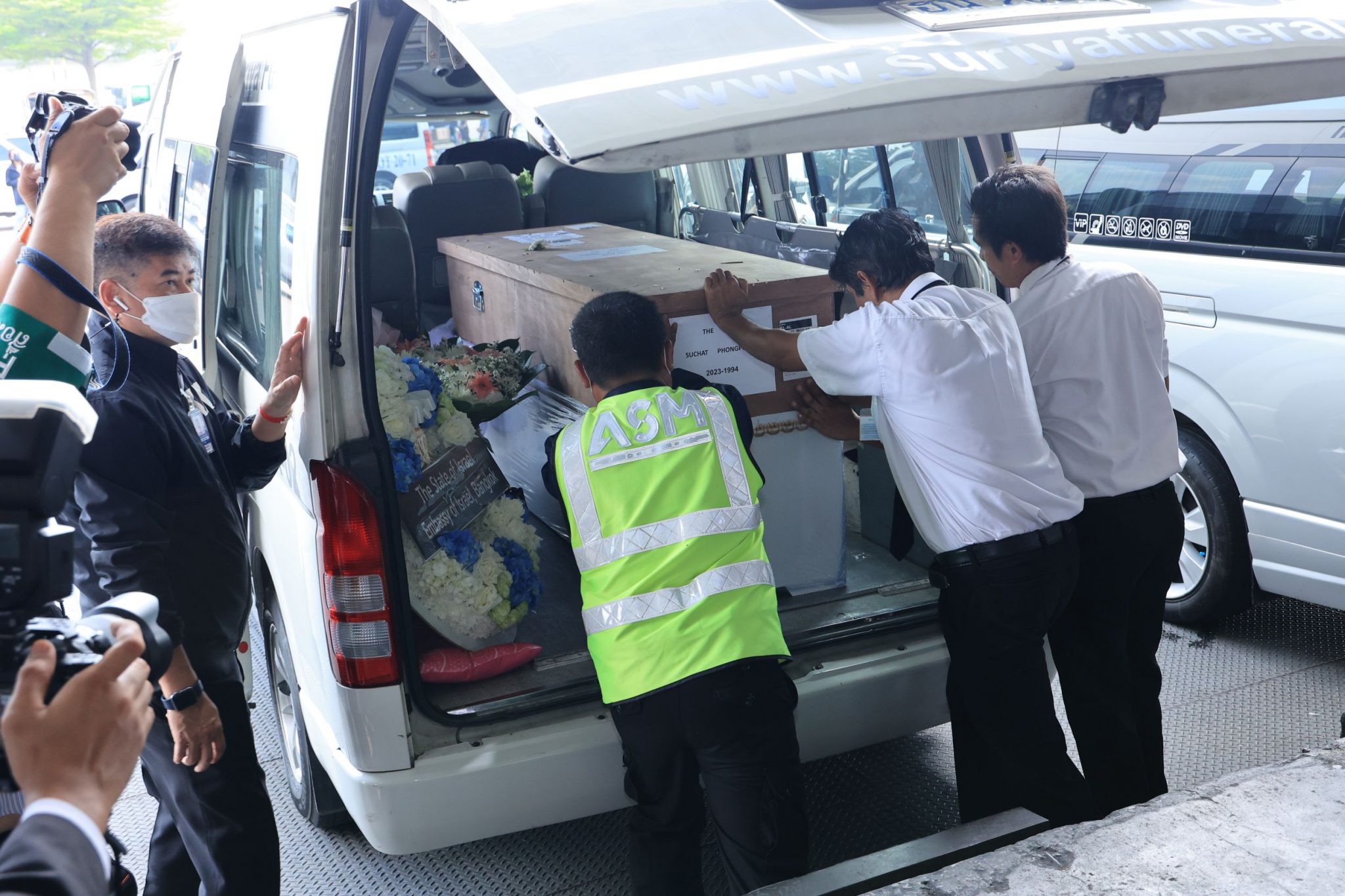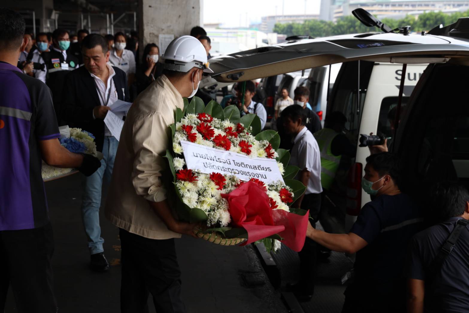 นายสิรภพ ดวงสอดศรี ผู้ช่วยรัฐมนตรีประจำกระทรวงแรงงาน กล่าวว่า ตนเองได้รับมอบหมายจากนายพิพัฒน์ รัชกิจประการ มาส่งร่างแรงงานผู้เสียชีวิตจากประเทศอิสราเอล ตนเองรู้สึกเสียใจกับครอบครัวของแรงงานไทยที่เสียชีวิตจากเหตุการณ์ความไม่สงบในอิสราเอล ผมและผู้บริหารกระทรวงแรงงานได้มาร่วมรับส่งศพแรงงานไทยซึ่งสถานเอกอัครราชทูตได้ส่งร่างแรงงานไทยชุดแรกจำนวน 8 ราย ซึ่งในส่วนของกระทรวงแรงงาน หน่วยงานที่อยู่ในจังหวัดภูมิลำเนาของแรงงานไทยได้ประสานครอบครัวผู้เสียชีวิต เพื่ออำนวยความสะดวก ส่งร่างแรงงานที่เสียชีวิตทุกรายกลับไปประกอบพิธีทางศาสนาที่ภูมิลำเนาในจังหวัดอุดรธานี ศรีสะเกษ นครราชสีมา ขอนแก่น ชัยภูมิ และสุโขทัย