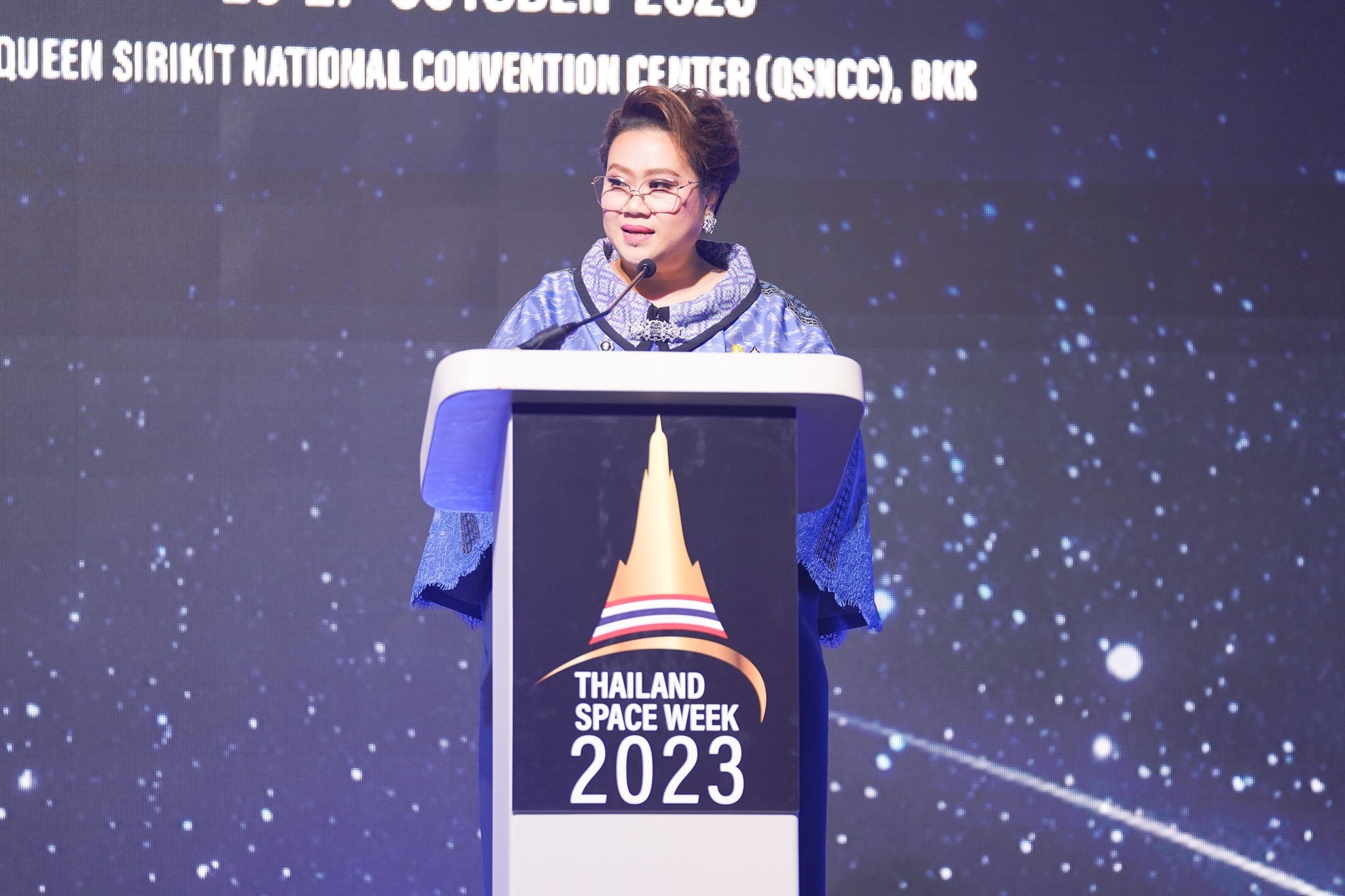 นางสาวศุภมาส อิศรภักดี รัฐมนตรีว่าการกระทรวงการอุดมศึกษา วิทยาศาสตร์ วิจัย และนวัตกรรม กล่าวว่า รัฐบาลมีนโยบายชัดเจนในเรื่องการส่งเสริมการพัฒนาเศรษฐกิจใหม่ โดยเฉพาะอุตสาหกรรมเทคโนโลยีขั้นสูงอย่างเทคโนโลยีอวกาศ และอุตสาหกรรมอื่นๆ ที่เกี่ยวข้อง รวมถึงการวิจัยพัฒนาเทคโนโลยีและนวัตกรรมในประเทศ เพื่อให้เป็นกลไกในการขับเคลื่อนเศรษฐกิจและยกระดับศักยภาพการแข่งขันของประเทศ ซึ่ง กระทรวง อว. ได้ส่งเสริมและสนับสนุนนโยบายรัฐบาลมาโดยตลอด งาน Thailand Space Week 2023 หรือ สัปดาห์อวกาศแห่งชาติ ถือเป็นงานที่มีความสำคัญกับการพัฒนาโครงสร้างของระบบเศรษฐกิจและอุตสาหกรรมขั้นสูงของไทย เนื่องจากได้รับทราบจากทาง GISTDA ว่าเป้าหมายหลักของงานในปีนี้คือการนำเสนอการใช้ประโยชน์จากเทคโนโลยีอวกาศเพื่อสร้างความยั่งยืนทั้งในเชิงสังคมและเชิงธุรกิจ รวมถึงบทบาทในด้านต่างๆ ของภาคธุรกิจและเอกชนที่มีต่อการพัฒนาเศรษฐกิจอวกาศในมิติต่างๆ ซึ่งได้รับความสนใจจากกลุ่ม startup ของหน่วยงานภาครัฐ ภาคธุรกิจ ภาคเอกชน ด้านการพัฒนาเทคโนโลยีอวกาศ ทั้งในและต่างประเทศที่ตอบรับร่วมงานเป็นจำนวนมากที่จะใช้โอกาสจากงานนี้ในการแลกเปลี่ยนและ Update ข้อมูลด้านเทคโนโลยีและนวัตกรรมอวกาศของโลกในปัจจุบัน รวมทั้งพูดคุยหารือเกี่ยวกับทิศทางการเติบโตของอุตสาหกรรมอวกาศในอนาคต และที่สำคัญในวันพฤหัสบดีที่ 26 ตุลาคม 2566 กระทรวง อว. ได้รับเกียรติจาก ฯพณฯ ท่านนายเศรษฐา ทวีสิน นายกรัฐมนตรี กล่าวปาฐกถาพิเศษในหัวข้อ Space Beyond Borders: Thailand in the Global Value Chain การพัฒนาอย่างก้าวกระโดดของธุรกิจอวกาศในช่วงทศวรรษที่ผ่านมา ส่งผลให้ปัจจุบันอวกาศไม่ใช่เรื่องไกลตัวอีกต่อไป ธุรกิจอวกาศไร้พรมแดนของโลกเติบโตขึ้นอย่างรวดเร็ว กิจการอวกาศประเทศไทยกำลังพัฒนาให้เชื่อมโยงเข้าสู่ห่วงโซ่มูลค่าในระดับโลก หรือ Global Value Chain อีกด้วย