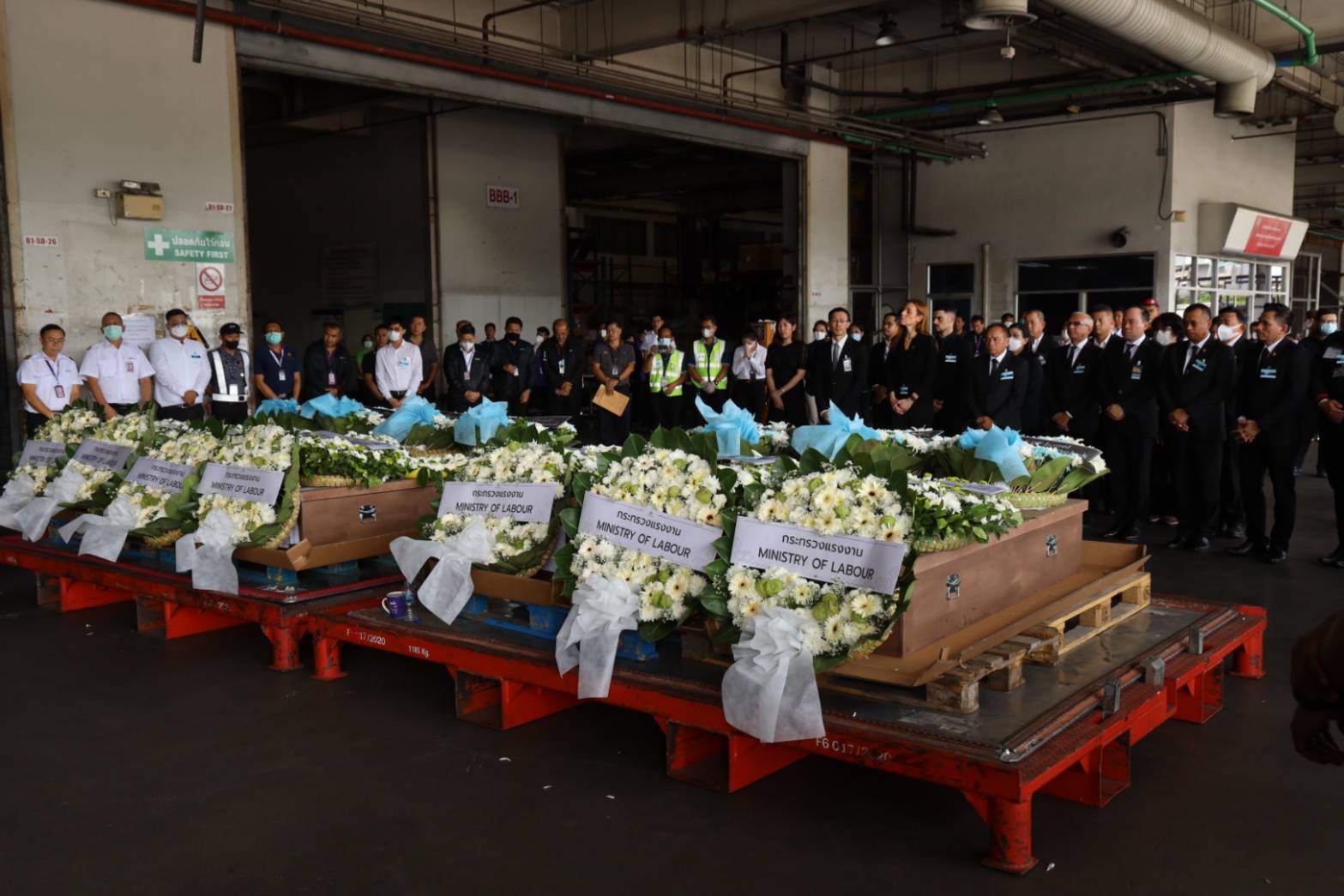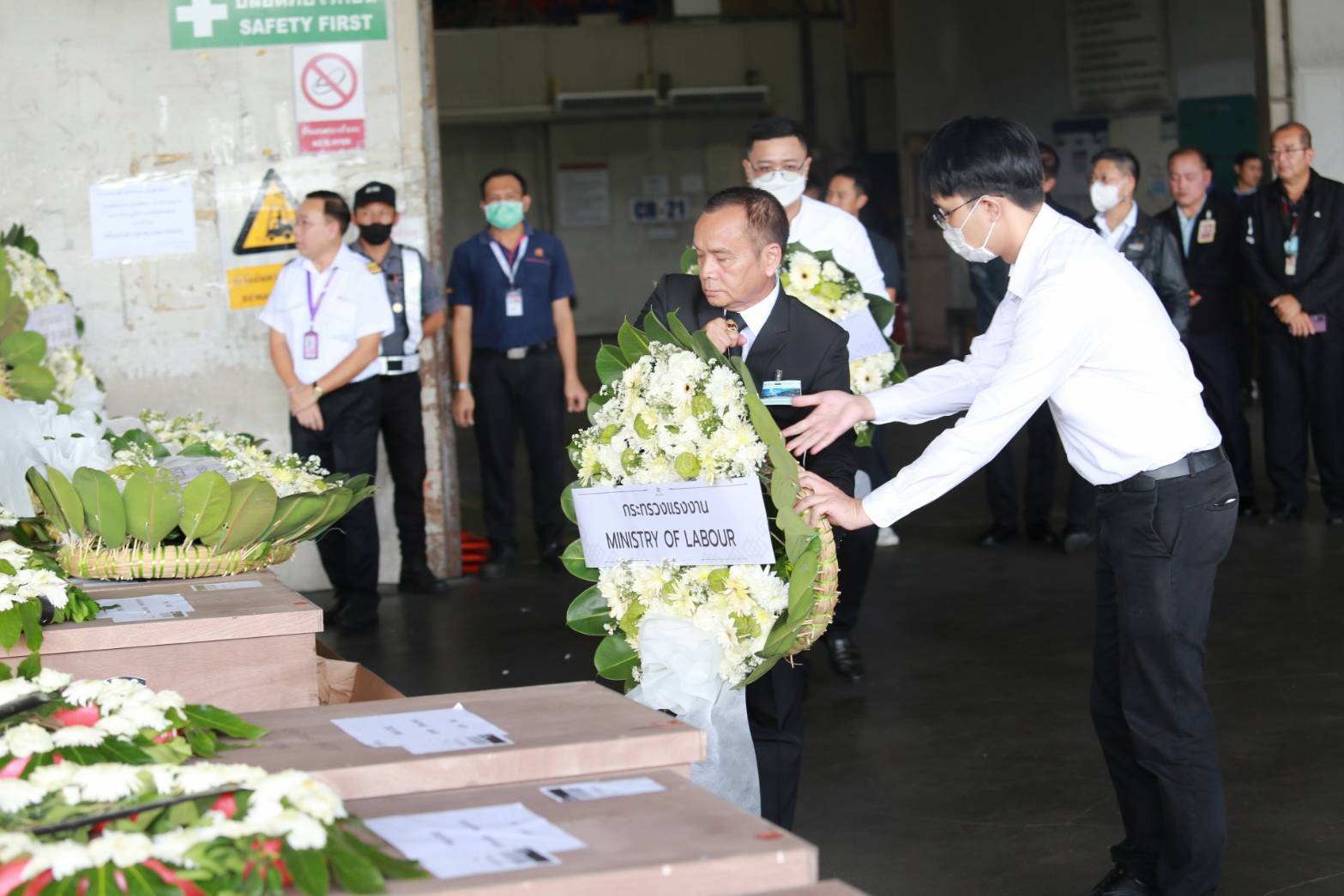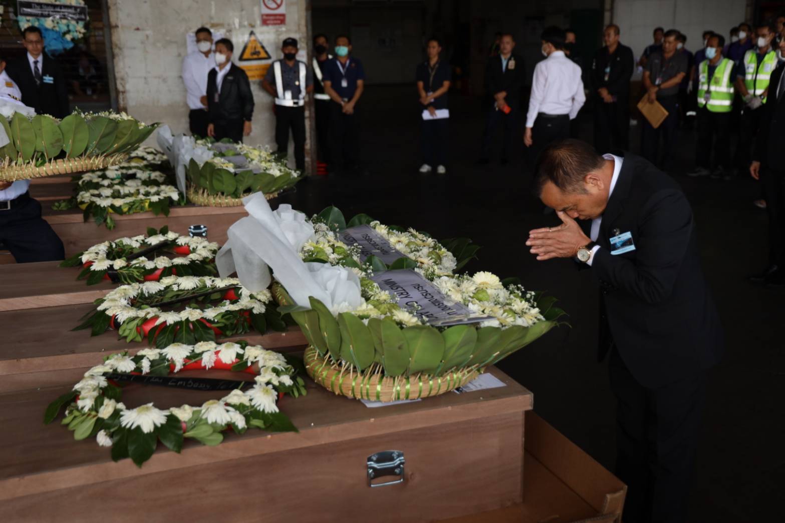 นายอารี ไกรนรา เลขานุการรัฐมนตรีว่าการกระทรวงแรงงาน กล่าวว่า ในวันนี้ท่านพิพัฒน์ รัชกิจประการ รัฐมนตรีว่าการกระทรวงแรงงาน ได้มอบหมายให้ผมพร้อมด้วย รองปลัดกระทรวงแรงงาน และผู้ตรวจราชการกระทรวงแรงงาน เป็นผู้แทนของกระทรวงแรงงานในการมารับร่างแรงงานไทยที่เสียชีวิตจากเหตุการณ์ความไม่สงบในอิสราเอล ซึ่งสถานเอกอัครราชทูตได้ส่งร่างแรงงานไทยชุดที่สองกลับมาอีกจำนวน 7 รายในวันนี้มาพร้อมกับแรงงานไทย จำนวน 268 คน ด้วยสายการบิน EL AL เที่ยวบินที่ LY 083 ถึงท่าอากาศยานสุวรรณภูมิเวลา 10.35 น.พร้อมร่วมวางพวงหรีดของท่านรัฐมนตรีว่าการกระทรวงแรงงานเพื่อแสดงความอาลัย
