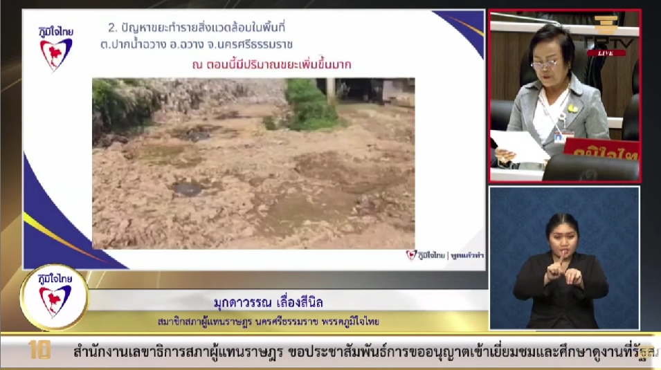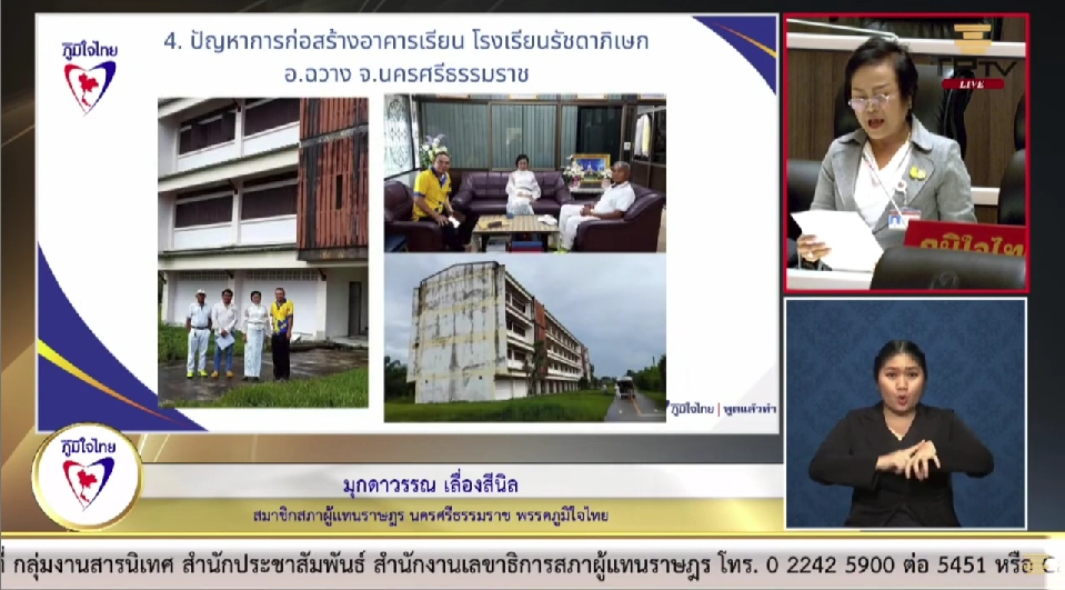 วันที่ 26 ตุลาคม 2566 นางมุกดาวรรณ เลื่องสีนิล สมาชิกสภาผู้แทนราษฎรจังหวัดนครศรีธรรมราช เขต 8 พรรคภูมิใจไทย ได้นำปัญหาที่ส่งผลกระทบต่อประชาชนในหลายพื้นที่ของจังหวัดนครศรีธรรมราช เข้าหารือในการประชุมสภาผู้แทนราษฎร ครั้งที่ 27