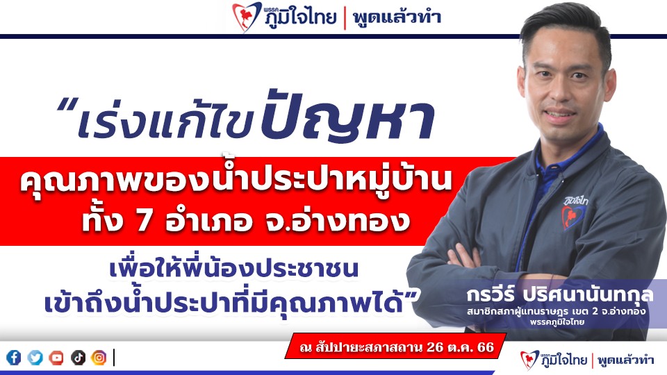 นายกรวีร์ ระบุว่าได้ลงพื้นที่สำรวจคุณภาพน้ำประปาในพื้นที่จังหวัดอ่างทอง พบว่าคุณภาพน้ำประปาในหลายพื้นที่มีสภาพไม่สะอาด มีตะกอน สี กลิ่น และรสชาติผิดปกติ ส่งผลกระทบต่อสุขภาพของประชาชน ปัญหาดังกล่าวอาจเกิดจากสาเหตุหลายประการ เช่น ท่อประปาชำรุด แหล่งน้ำต้นทุนเสื่อมโทรม หรือปัญหาการขาดแคลนน้ำ ควรมีการแก้ไขดังนี้