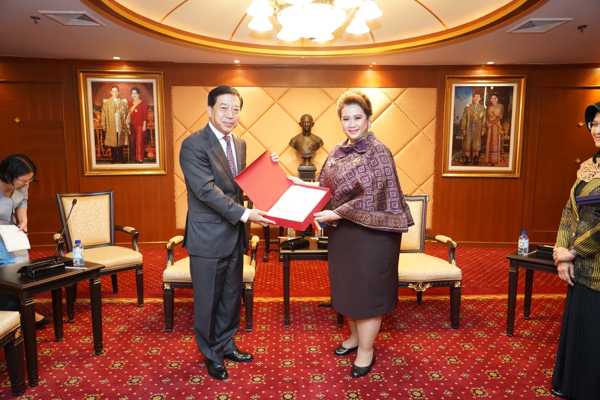 เมื่อวันที่ 2 พ.ย. 2566 นายหาน จื้อเฉียง (Mr. Han Zhiqiang) เอกอัครราชทูตวิสามัญผู้มีอำนาจเต็มแห่งสาธารณรัฐประชาชนจีนประจำประเทศไทยและคณะ ได้เข้าเยี่ยมคารวะ นางสาวศุภมาส อิศรภักดี รัฐมนตรีว่าการกระทรวงการอุดมศึกษา วิทยาศาสตร์ วิจัยและนวัตกรรม (อว.) โดยมี แพทย์หญิงเพชรดาว โต๊ะมีนา ที่ปรึกษา รมว.กระทรวง อว. นางสาวสุชาดา แทนทรัพย์ เลขานุการ รมว.กระทรวง อว. และ รองศาสตราจารย์ ดร.พาสิทธิ์ หล่อธีรพงศ์ รองปลัดกระทรวง อว. ร่วมหารือฯ ณ ห้องพระจอมเกล้า ชั้น 3 อาคารพระจอมเกล้า (ถนนโยธี) กระทรวง อว.