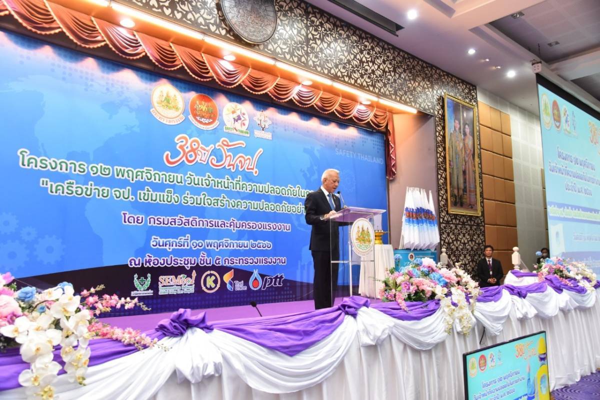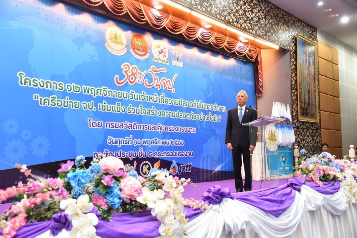 รมว.แรงงาน “พิพัฒน์” เป็นประธานในพิธีเปิดงานครบรอบ 38 ปี “12 พฤศจิกายน วันเจ้าหน้าที่ความปลอดภัยในการทำงาน” ชูนโยบาย Safety Thailand ตั้งเป้าอัตราการประสบอันตรายลดลงร้อยละ 1 ต่อปี พร้อมชื่นชม ปี 66 ลดลงเกินเป้า