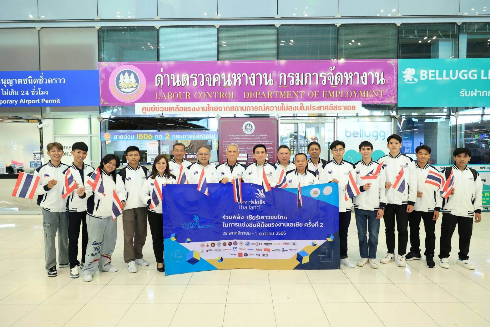 วันที่ 25 พฤศจิกายน 2566 นายพิพัฒน์ รัชกิจประการ รัฐมนตรีว่าการกระทรวงแรงงาน นายไพโรจน์ โชติกเสถียร ปลัดกระทรวงแรงงาน พร้อมด้วยนายสิรภพ ดวงสอดศรี ผู้ช่วยรัฐมนตรีประจำกระทรวงแรงงาน นายธนัสถ์ ทวีเกื้อกูลกิจ ที่ปรึกษารัฐมนตรีว่าการกระทรวงแรงงาน นายอารี ไกรนรา เลขานุการรัฐมนตรีว่าการกระทรวงแรงงาน นายภูชงค์ วรศรี ประจำสำนักเลขาธิการนายกรัฐมนตรี นางสาวบุปผา เรืองสุด อธิบดีกรมพัฒนาฝีมือแรงงาน และนายพิเชษฐ์ ทองพันธ์ รองอธิบดีกรมพัฒนาฝีมือแรงงาน ในฐานะเป็นหน่วยงานดำเนินการจัดส่งเยาวชนเข้าแข่งขันฯ ร่วมส่ง 9 ตัวแทนเยาวชนไทยเดินทาง Upskill ในการแข่งขันฝีมือแรงงานเอเชีย ครั้งที่ 2 ณ ท่าอากาศยานสุวรรณภูมิ จังหวัดสมุทรปราการ มั่นใจเยาวชนไทยจะสามารถกวาดเหรียญรางวัลกลับมายังประเทศไทยได้อย่างแน่นอน