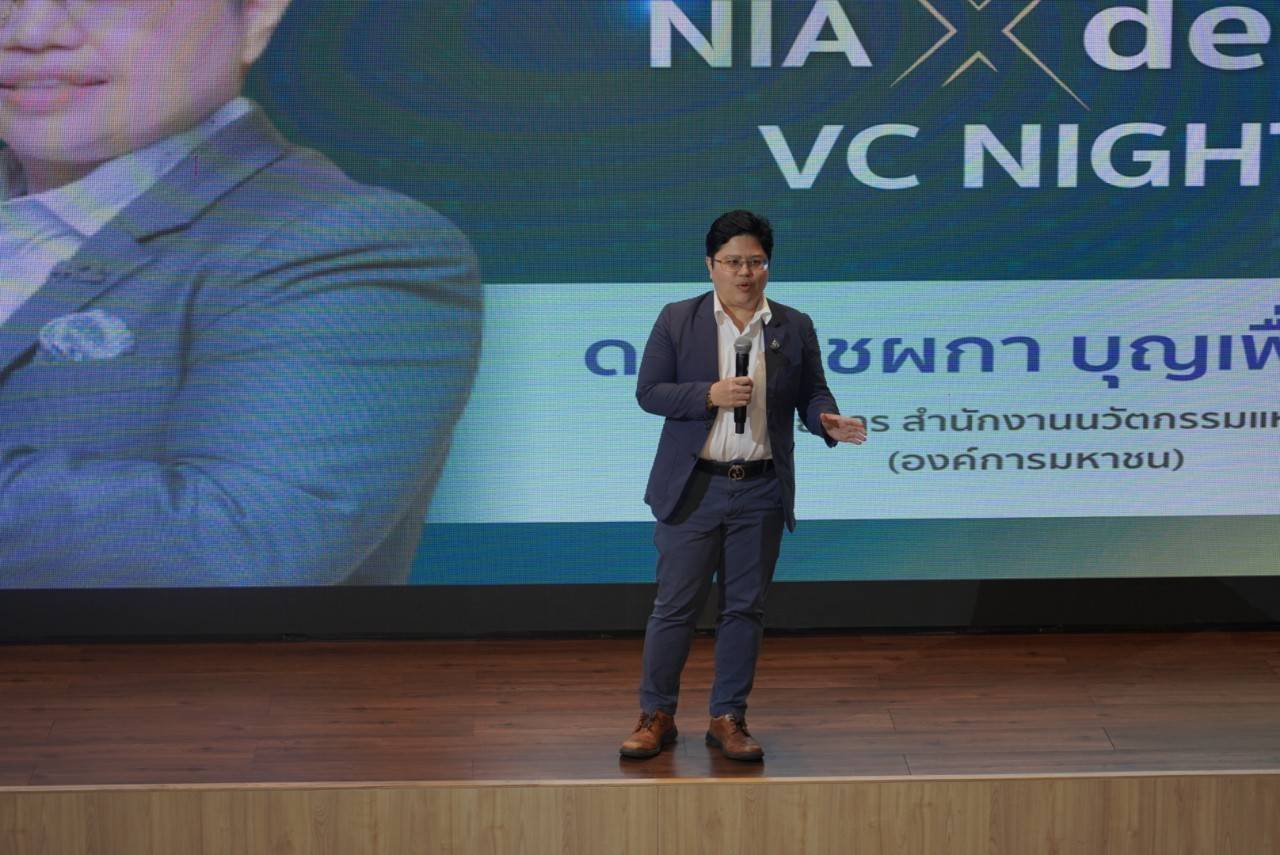 นางสาวศุภมาส อิศรภักดี รัฐมนตรีว่าการกระทรวงการอุดมศึกษา วิทยาศาสตร์ วิจัยและนวัตกรรม กล่าวว่า “กระทรวงการอุดมศึกษา วิทยาศาสตร์ วิจัยและนวัตกรรม (อว.) ให้ความสำคัญกับการขับเคลื่อนเศรษฐกิจและสังคมของประเทศด้วยเศรษฐกิจฐานนวัตกรรมโดยเฉพาะในกลุ่มสตาร์ทอัพ และผู้ประกอบการรุ่นใหม่ กระทรวง อว. มีบทบาทในการสนับสนุนการเพิ่มกำลังคนรุ่นใหม่เข้ามาในระบบนิเวศสตาร์ทอัพของประเทศไทย และส่งเสริมการดำเนินธุรกิจให้สตาร์ทอัพเติบโต โดยดำเนินการผ่าน โครงการ Alpha Program ภายใต้ Startup Thailand League ร่วมกับหน่วยงานในภาคการศึกษาทั่วประเทศไทยกว่า 50 แห่ง เกิดการจดทะเบียนบริษัทจากทีมนักศึกษาที่เข้าร่วมกว่า 61 บริษัท คิดเป็นมูลค่าของเศรษฐกิจกว่า 100,000,000.- บาท ทั้งนี้ ในปัจจุบัน มหาวิทยาลัยหลายแห่งได้มีการจัดตั้งกองทุนเพื่อลงทุนในธุรกิจสตาร์ทอัพของนักศึกษา เช่น CU Enterprise จุฬาลงกรณ์มหาวิทยาลัย, M Venturer มหาวิทยาลัยมหิดล, อ่างแก้วโฮลดิ้ง มหาวิทยาลัยเชียงใหม่ ที่ส่งเสริมการนำนวัตกรรมและเทคโนโลยีขั้นสูงไปใช้ในการประกอบธุรกิจ และกำลังผลักดันเพิ่มมากขึ้นอย่างต่อเนื่อง จึงนับเป็นจุดเริ่มต้นที่ดีของการจัดงาน NIA x depa VC NIGHT ในวันนี้ โดยเจ้าภาพหลัก คือ NIA และ Depa ร่วมกับหน่วยงานพันธมิตร คือ สมาคมไทยผู้ประกอบธุรกิจเงินร่วมลงทุน หรือ TVCA และ Beacon Venture Capital เพื่อพัฒนาเครือข่ายนักลงทุนให้มีความเข้มแข็ง และส่งเสริมการลงทุนให้เกิดการลงทุนในสตาร์ทอัพไทย กิจกรรมนี้ทำให้ได้เห็นถึงความร่วมมือของหน่วยงานรัฐ และภาคเอกชนที่มีความพร้อมในการร่วมกันขับเคลื่อนระบบเศรษฐกิจและสังคมของประเทศด้วยพลังของนวัตกรรมและผู้ประกอบการเทคโนโลยี หรือสตาร์ทอัพ ทั้งนี้ จะเห็นได้ว่าปัจจัยสำคัญในการพัฒนาระบบนิเวศสตาร์ทอัพของไทยให้แข็งแรงและสามารถแข่งขันในระดับสากลได้ คือ การเห็นเป้าหมายเดียวกัน การทำงานประสานร่วมกันในทุกภาคส่วนที่เกี่ยวข้อง รับและส่งไม้ต่อกันอย่างสอดคล้อง ซึ่งแนวทางความร่วมมือรัฐกับเอกชนเพื่อพัฒนาตลาดในอนาคตที่ได้นำเสนอกันในวันนี้เป็นข้อเสนอสำคัญที่น่าสนใจ ซึ่งกระทรวง อว. จะนำไปผลักดันเพื่อให้เกิดเป็นรูปธรรมต่อไป