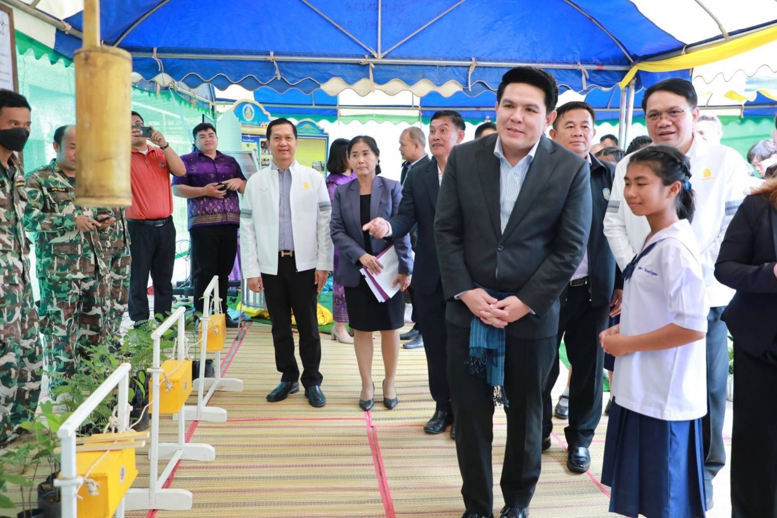จากนั้น รมช.ศธ. ได้รับชมการนำเสนอนโยบายสู่แนวทางการปฏิบัติ การน้อมนำพระบรมราโชบาย รัชกาลที่ 10 สู่การปฏิบัติ และนิทรรศการที่ทางโรงเรียนได้จัดขึ้น เช่น นิทรรศการโรงเรียนบ้านแก่งม่วง เกี่ยวกับการจัดกิจกรรมส่งเสริมการอ่าน เน้นทักษะอาชีพ ซึ่งเป็นนิทรรศการของสำนักงานส่งเสริมการเรียนรู้จังหวัดเลย (สกร.) และนิทรรศการของเขตรักษาพันธุ์สัตว์ป่าภูหลวง พร้อมมอบอุปกรณ์กีฬาให้แก่นักเรียน