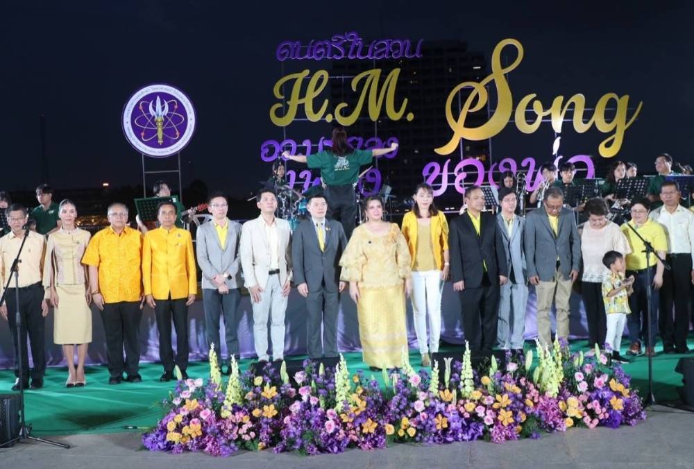 ศ.ดร.ศุภชัย ปทุมนากุล รองปลัด อว.กล่าวรายงานว่า อว. จัดงาน “ดนตรีในสวน : H.M. Song อว. บรรเลงเพลงของพ่อ” เพื่อแสดงดนตรีบรรเลงบทเพลงพระราชนิพนธ์ของ พระบาทสมเด็จพระบรมชนกาธิเบศร มหาภูมิพลอดุลยเดชมหาราช บรมนาถบพิตร ทั่วประเทศ ซึ่งกิจกรรมภายในงาน ประกอบด้วย การแสดงดนตรี H.M.song อว.บรรเลงเพลงของพ่อ การเทิดพระเกียรติในหลวงรัชกาลที่ 9 ได้แก่ การแสดงโขน การแสดงบินโดรนแปรอักษร การแสดงการวาดภาพ และศิลปกรรมช่างไทย และการแสดงนิทรรศการเทิดพระเกียรติ ในหลวงรัชกาลที่ 9 พระบิดาแห่งศาสตร์ต่างๆ 9 ด้าน และพระอัจฉริยภาพด้าน การดนตรี ด้านศิลปวัฒนธรรม ด้านเทคโนโลยีและนวัตกรรม และด้านการช่างไทย โดยในปีนี้ อว. มีการจัดงานมากกว่า 62 จังหวัด ครอบคลุมทั่วประเทศ โดยมีสถาบันการศึกษา และหน่วยงานในพื้นที่เข้าร่วม เช่น โรงเรียน องค์กรปกครองส่วนท้องถิ่น การท่องเที่ยวแห่งประเทศไทย และส่วนราชการอื่นๆ ในพื้นที่มากกว่า 75 องค์กรเข้าร่วม