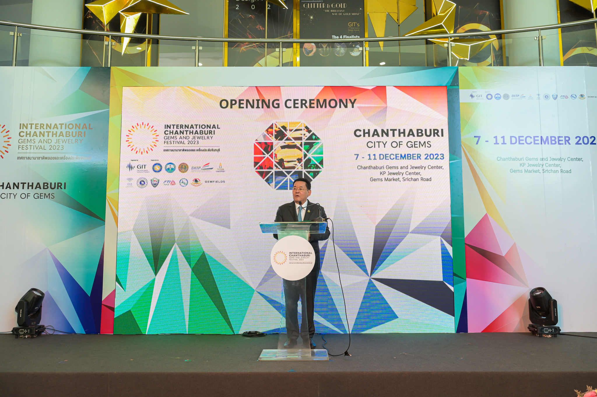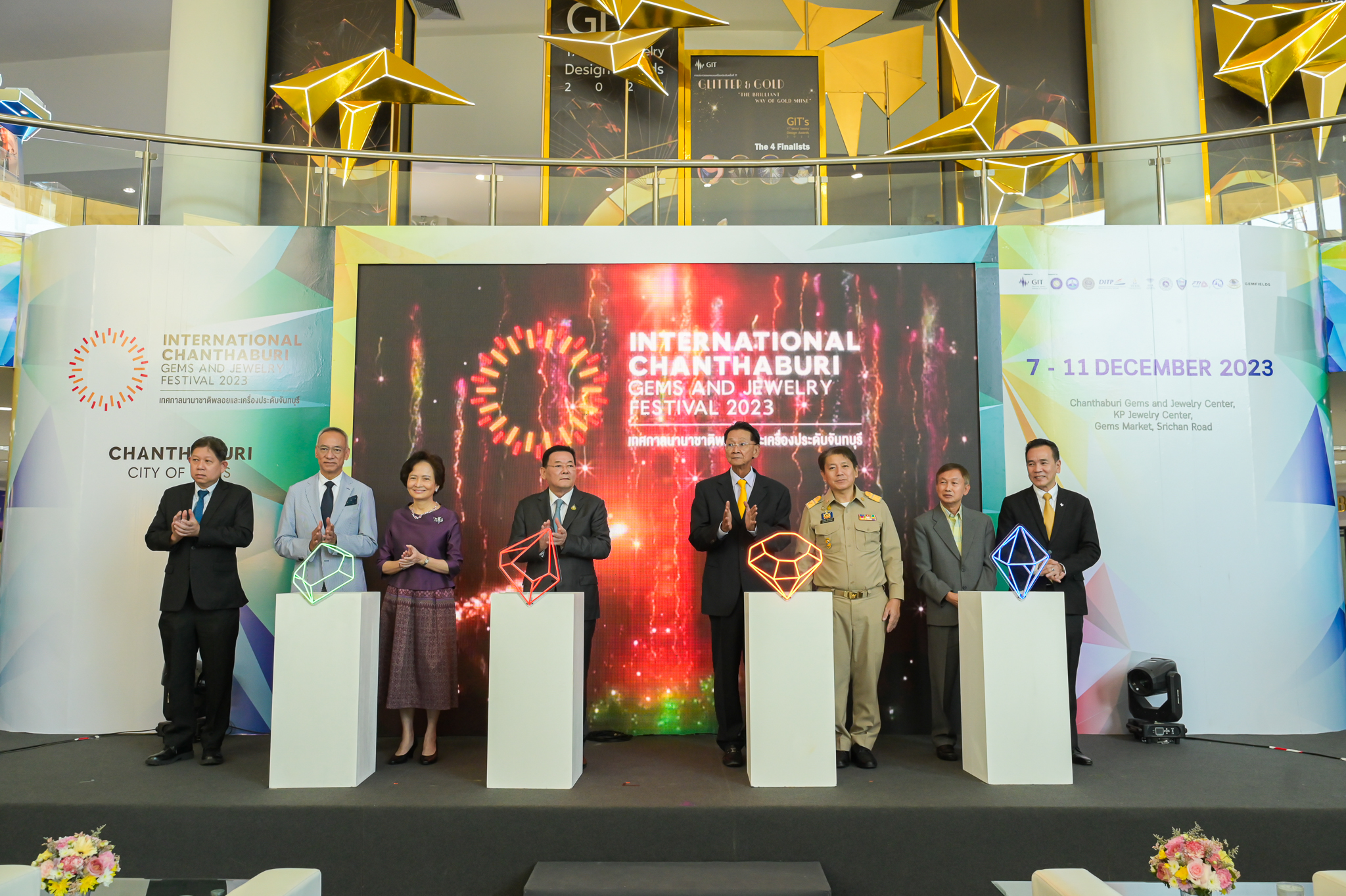 ด้านนายสุเมธ ประสงค์พงษ์ชัย ผู้อำนวยการสถาบันวิจัยและพัฒนาอัญมณีและเครื่องประดับแห่งชาติ กล่าวเสริมว่า การจัดงานครั้งนี้จัดขึ้นระหว่างวันที่ 7 – 11 ธันวาคม 2566 ซึ่งอยู่ในช่วงเทศกาลส่งท้ายปีเพื่อต้อนรับปีใหม่ ภายในงานพบกับมหกรรมจำหน่ายสินค้าอัญมณีและเครื่องประดับคุณภาพดี จากผู้ประกอบการชาวไทยและต่างชาติกว่า 300 ร้านค้า ในราคาสุดพิเศษ พร้อมทั้งจุดประกายการเรียนรู้เรื่องราวเกี่ยวกับอัญมณีและเครื่องประดับในจังหวัดจันทบุรี ผ่านกิจกรรม Gems Tour ที่จะพาเที่ยวชมเหมืองพลอยและสถานที่สำคัญของจันทบุรี และการสัมมนาสร้างองค์ความรู้ในหัวข้อที่เกี่ยวข้องกับการพัฒนาด้านการตลาดของธุรกิจอัญมณีและเครื่องประดับให้กับผู้ที่สนใจซึ่งเป็นการขยายโอกาสช่องทางในเชิงพาณิชย์ อาทิ งานสัมมนาด้านการตลาดการค้าออนไลน์ การจัดสัมมนาด้านอัญมณีและเครื่องประดับ กิจกรรมเวิร์คช็อปต่างๆ มากมายโดยผู้เชี่ยวชาญในอุตสาหกรรม การจับคู่ธุรกิจภายใต้โครงการซื้อด้วยความมั่นใจ (BWC Business Matching) บริการตรวจสอบอัญมณีและเครื่องประดับเคลื่อนที่ (Mobile Lab) เพื่อให้บริการตรวจสอบและออกใบรับรองคุณภาพ ภายใต้โครงการซื้อด้วยความมั่นใจ (Buy With Confidence) รวมถึงการจัดแสดงนิทรรศการอัญมณีและเครื่องประดับที่ได้รับรางวัล GIT’s World Jewelry Design Awards 2023 นิทรรศการในโครงการพัฒนาผู้ประกอบการในภูมิภาค Gems Treasure กับผลงานชุด “เสน่ห์ใต้” รวมถึงนิทรรศการเครื่องประดับจากผู้ประกอบการจันทบุรี และยังมีกิจกรรมให้ผู้รักอัญมณีได้ร่วมสนุกอีกมากมาย