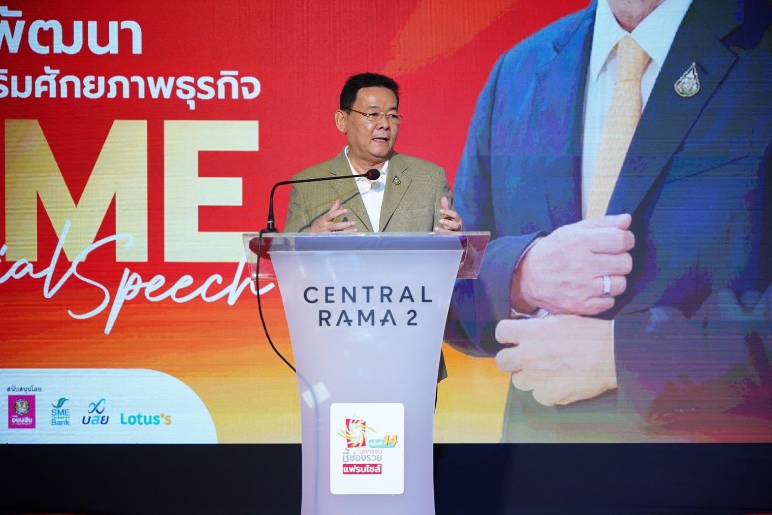 รมช.นภินทร ศรีสรรพางค์ เน้นความสำคัญของธุรกิจแฟรนไชส์ ซึ่งเป็นธุรกิจที่เกิดจากสูตรกิจการต้นแบบที่ประสบความสำเร็จ สามารถให้ผู้สนใจเริ่มธุรกิจ ผู้ว่างงาน ได้หารูปแบบที่เหมาะสมกับความชอบของตนเอง ได้เลือกสรรในการเริ่มประกอบกิจการ ซึ่งธุรกิจแฟรนไชส์ เป็นหนึ่งรูปแบบที่ คณะอนุกรรมการส่งเสริมและยกระดับ SME ไทย กระทรวงพาณิชย์ มุ่งหวังให้เป็นกลไกในการขับเคลื่อนมูลค่า SME ไปสู่ 40% ของ GDP ในปี 2570 ตามแนวนโยบายของกระทรวงพาณิชย์และรัฐบาล ลดรายจ่าย เพิ่มรายได้ ขยายโอกาส “รดน้ำที่ราก ดูแลคนตัวเล็ก”