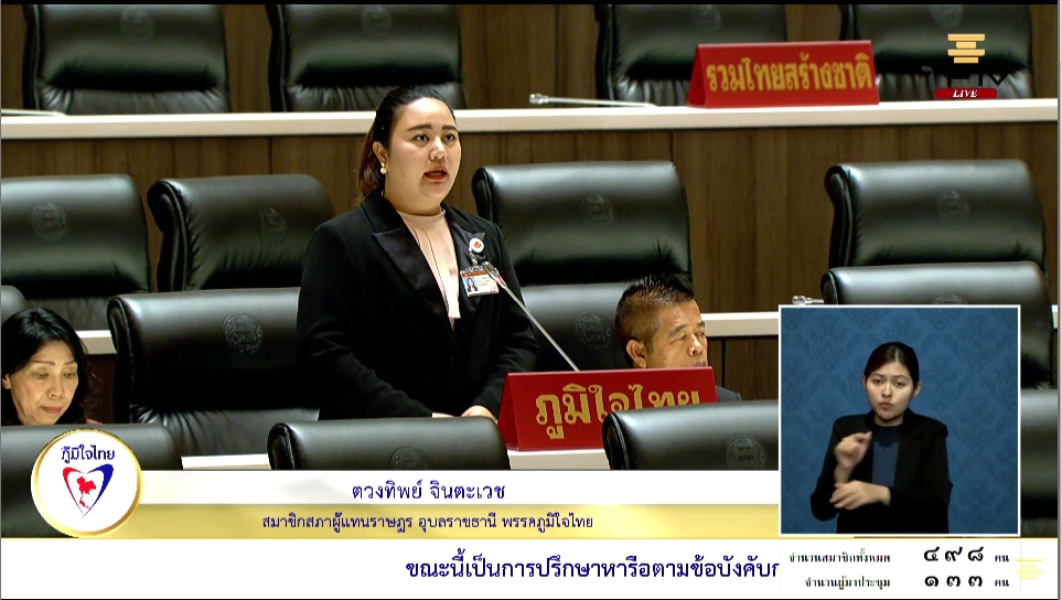 วันที่ 13 ธันวาคม 2566 นางสาวตวงทิพย์ จินตะเวช สมาชิกสภาผู้แทนราษฎรจังหวัดอุบลราชธานี เขต 11 พรรคภูมิใจไทย นำปัญหาสะพานเชื่อมบ้านป่าตาว-บ้านบัวเทียม และถนนสาย อบ.2192 เข้าหารือในการประชุมสภาผู้แทนราษฎร ครั้งที่ 1 (สมัยสามัญประจำปีครั้งที่สอง)